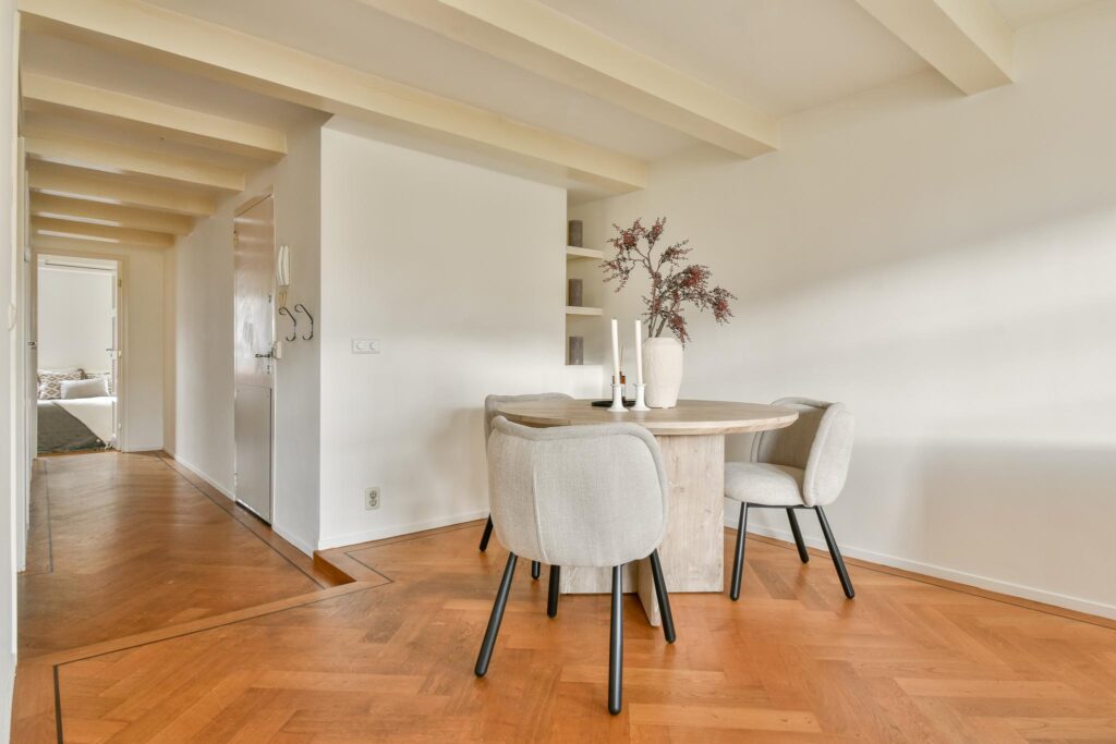 Door de visgraat parketvloer, het hoge balkenplafond en de ingebouwde kasten, is dit een zeer sfeervolle ruimte, waar tevens een gezellige eethoek is gecreëerd. Aansluitend treft u de dichte keuken, welke van diverse inbouwapparatuur is voorzien, o.a. een Boretti gasfornuis, oven en vaatwasser.