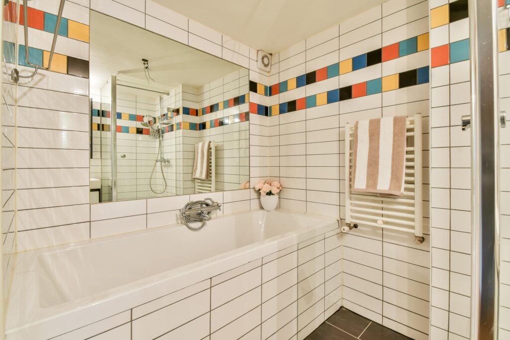Het appartement geniet een ruime badkamer, voorzien van een douche, bad en wastafelmeubel. Er is een separate wc met fontein aanwezig en laundry ruimte.
