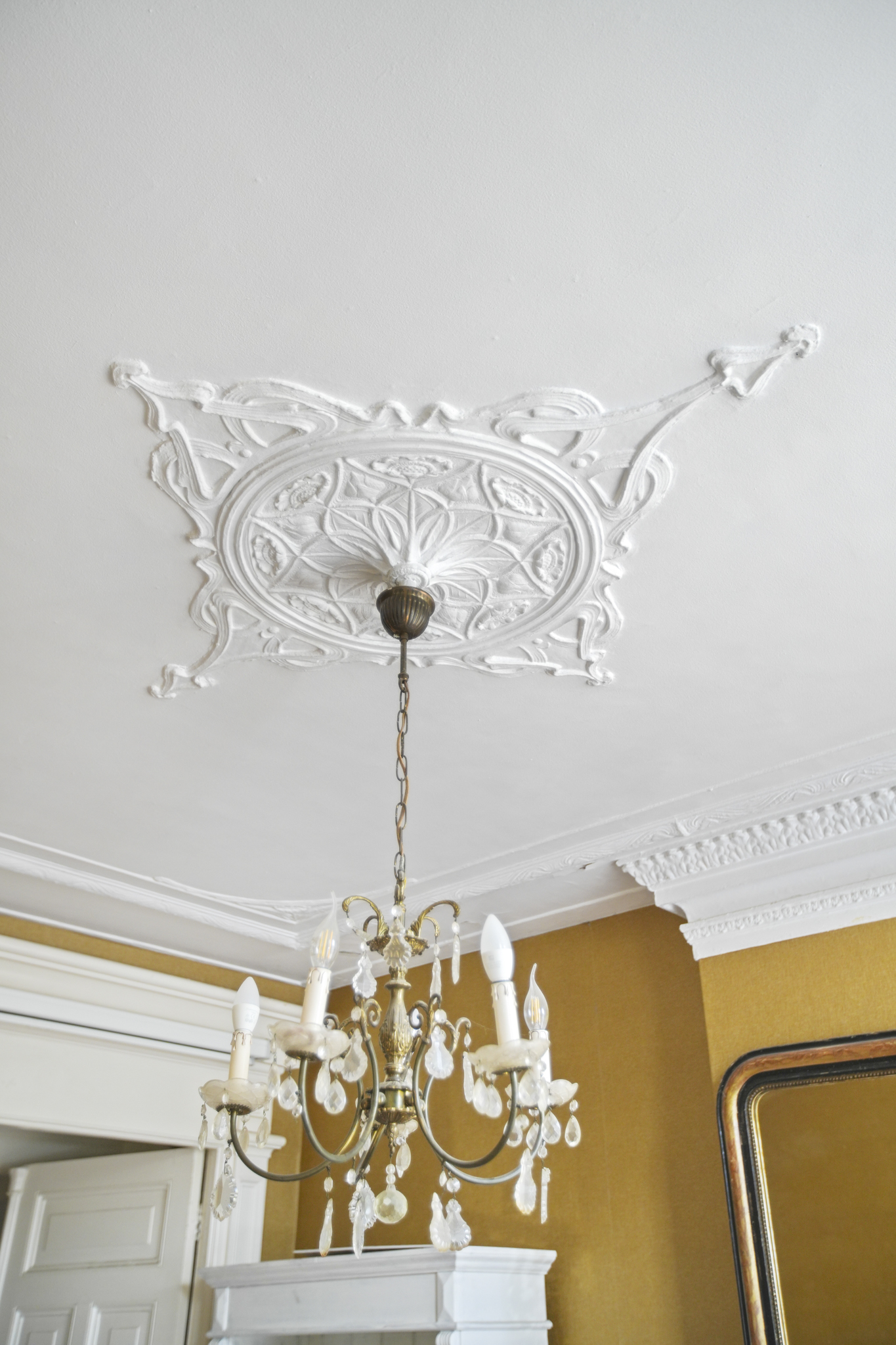 Originele details: marmeren entree, hoge plafonds mét sierlijsten, schouwen;