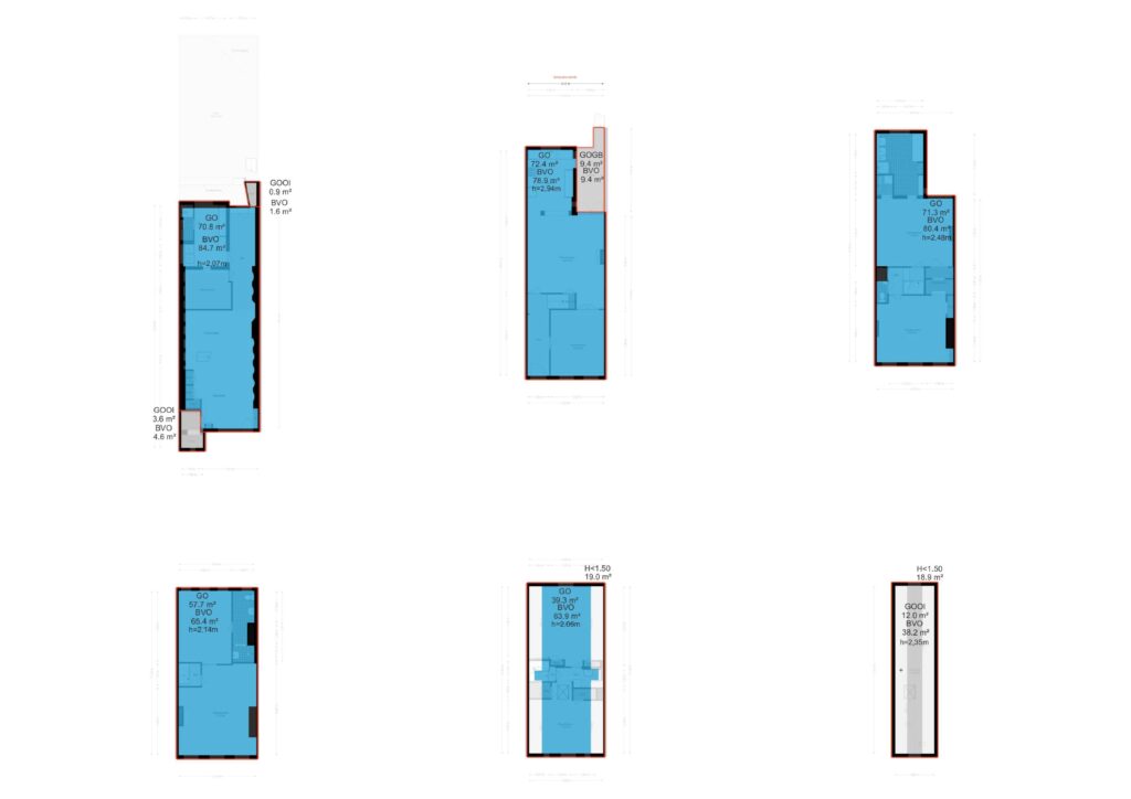 De eerste, tweede en derde verdiepingen bieden samen zes royale slaapkamers en twee badkamers, met hoge plafonds, ingebouwde kasten en volop lichtinval. De slaapkamers liggen zowel aan de voor- als achterzijde van het pand.