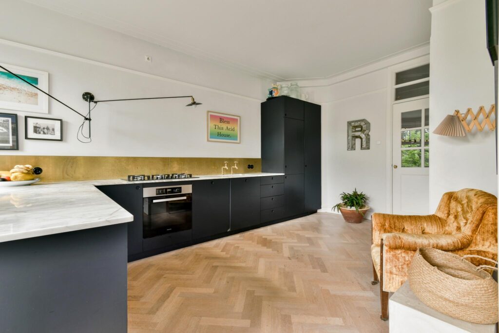 Door het gehele appartement ligt een eikenhouten visgraat parketvloer. Tevens is er nog een grote berging (25m2) gelegen op de zolderverdieping.