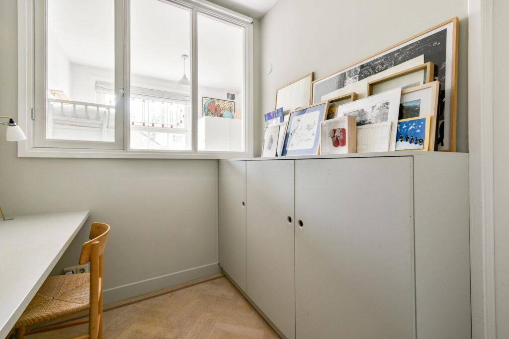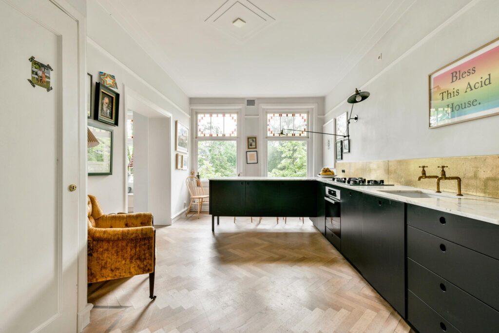 There is an oak herringbone parquet floor throughout the apartment. There is a large storage space (25m2) on the top floor.