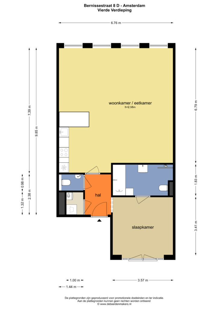 TE KOOP: Bernissestraat 8D, modern 2-kamer appartement, gelegen op de vierde verdieping (LIFT!) in het complex Amberhof uit 2009 in de hippe Rivierenbuurt, de woning is 75M2 (NEN2580 gemeten), beschikt over een lichte, ruime living, royale slaapkamer mét luxe badkamer én separate berging.