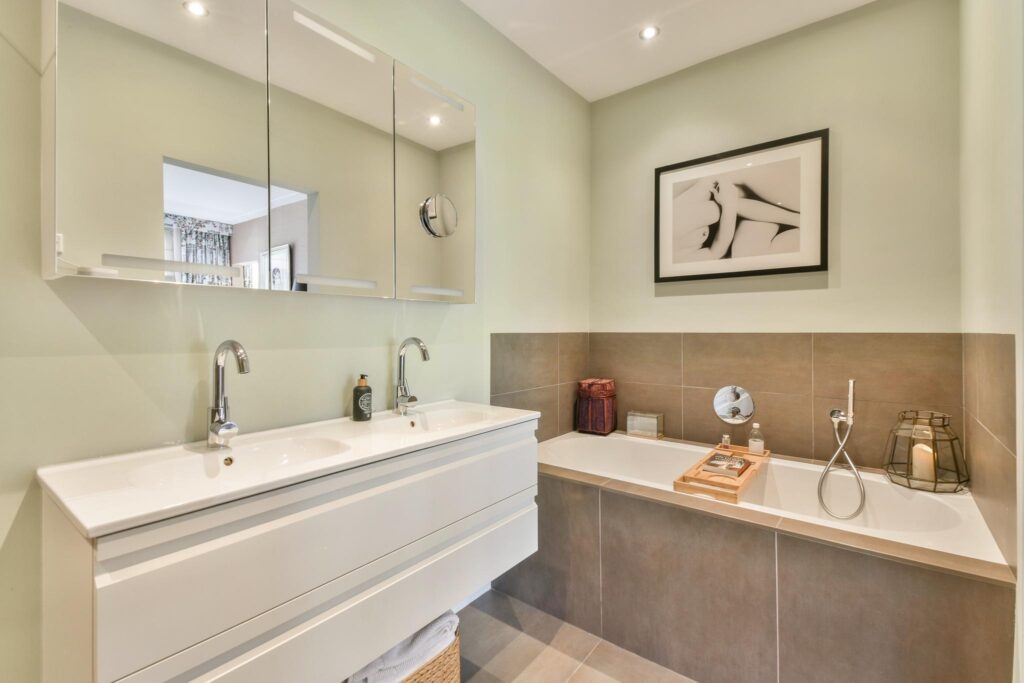 On the first floor you will find two well-sized bedrooms and a slightly smaller room which is currently used as an office, but can certainly be used as a baby room. The master bedroom is located at the rear and has a dressing room and direct access to the bathroom which has a bath, double sink and separate shower. The master also has French doors to the balcony. The second bedroom and office are located at the front of the house. There is a separate toilet with fountain on this floor.