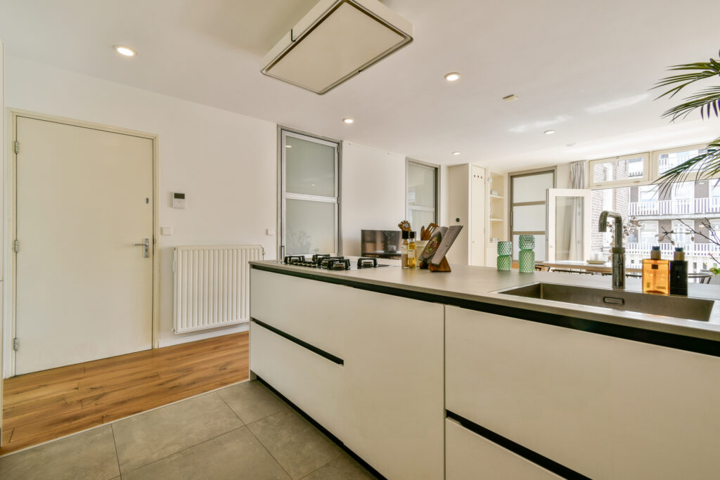 Via het trappenhuis bereikt u de entree van de woning. U stapt binnen in een ruim en licht appartement waar direct de luxe open keuken in het oog springt. Deze moderne keuken is uitgerust met diverse inbouwapparatuur van het merk Siemens en vormt het hart van de woning. Aangrenzend bevindt zich een gezellige eethoek met openslaande deuren naar het zonnige balkon op het Zuiden.