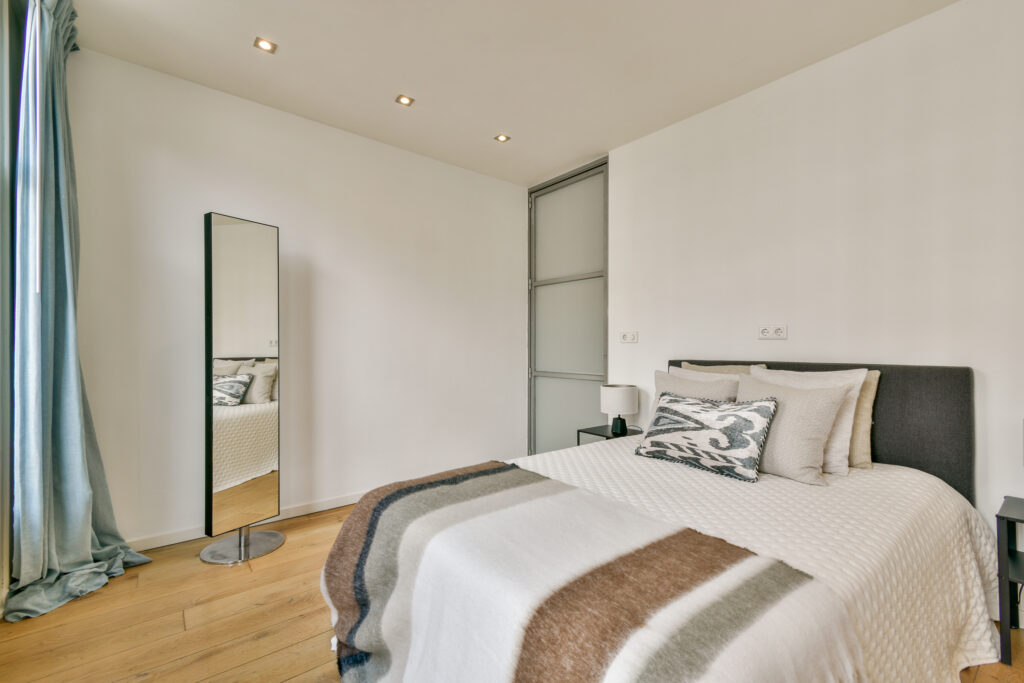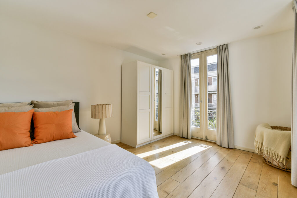 Aan de voorzijde van het appartement treft u een ruime slaapkamer met praktische inbouwkast en openslaande deuren naar een Frans balkon. Daarnaast is er een tweede goed bemeten slaapkamer, perfect als logeer-, werk- of kinderkamer. De badkamer is uitgerust met een ruime inloopdouche en een dubbel wastafelmeubel. Verder beschikt de woning over een apart toilet met fonteintje, een handige garderoberuimte en een aparte wasruimte met aansluitingen voor wasmachine en droger.