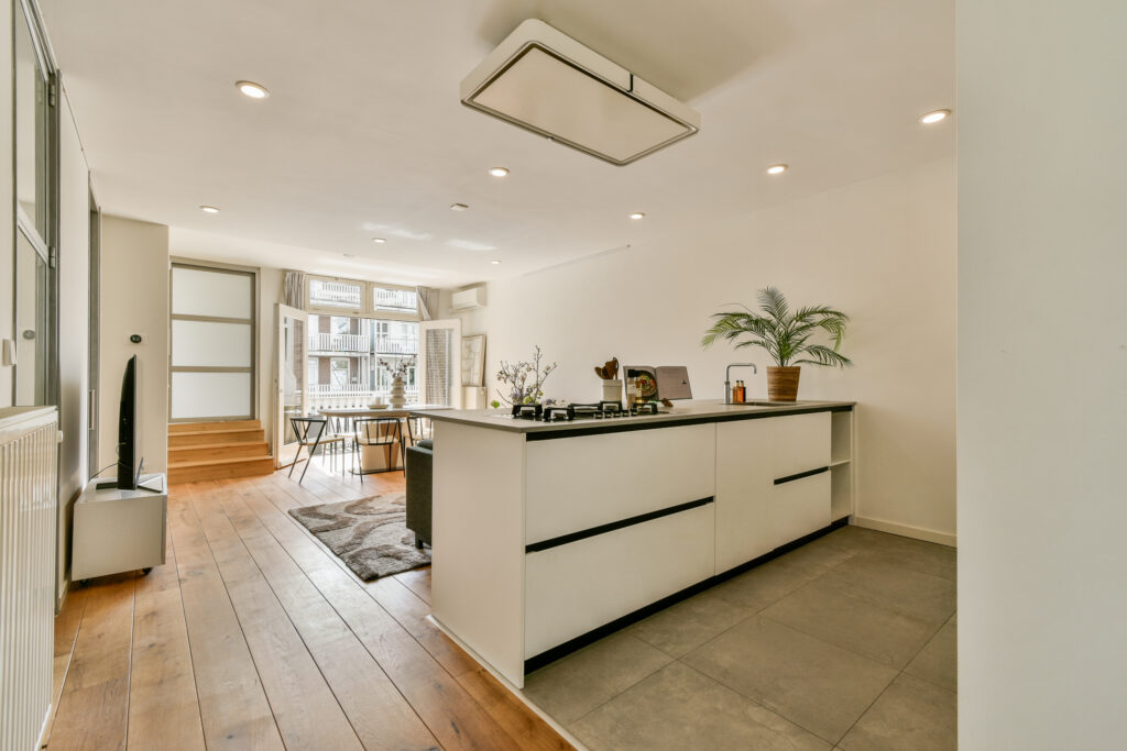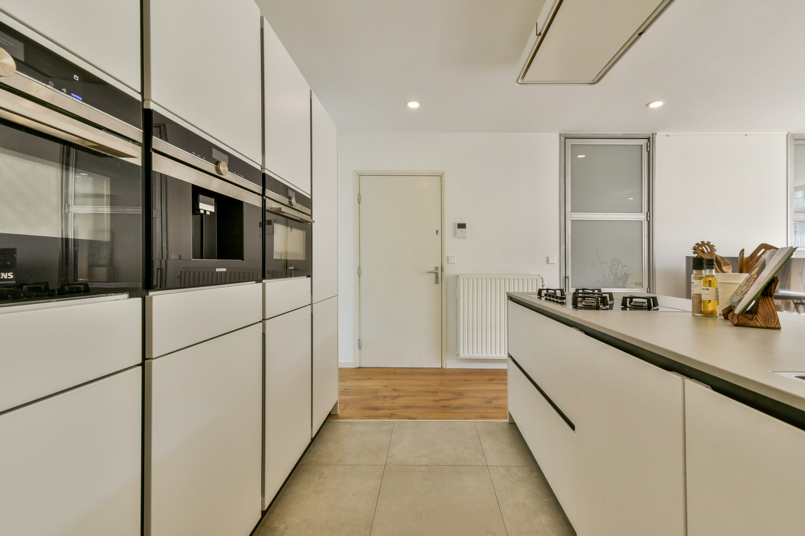 Via het trappenhuis bereikt u de entree van de woning. U stapt binnen in een ruim en licht appartement waar direct de luxe open keuken in het oog springt. Deze moderne keuken is uitgerust met diverse inbouwapparatuur van het merk Siemens en vormt het hart van de woning. Aangrenzend bevindt zich een gezellige eethoek met openslaande deuren naar het zonnige balkon op het Zuiden.