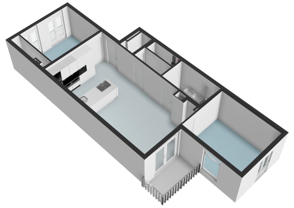 Aan de voorzijde van het appartement treft u een ruime slaapkamer met praktische inbouwkast en openslaande deuren naar een Frans balkon. Daarnaast is er een tweede goed bemeten slaapkamer, perfect als logeer-, werk- of kinderkamer. De badkamer is uitgerust met een ruime inloopdouche en een dubbel wastafelmeubel. Verder beschikt de woning over een apart toilet met fonteintje, een handige garderoberuimte en een aparte wasruimte met aansluitingen voor wasmachine en droger.