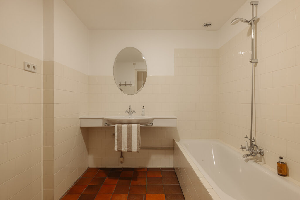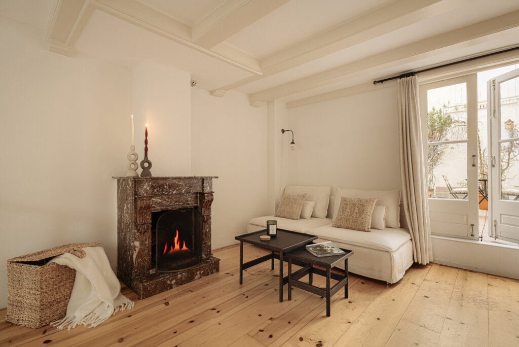 Bel-etage: entree in de gezellige woonkeuken, een ruimte waar direct een huiselijke sfeer heerst. De vide met hoge raampartijen geeft een prachtig gevoel van licht en ruimte. Achter de keuken ligt een praktische bijkeuken met inbouwkasten, laundry en een apart toilet. Tevens vindt u hier een ruime badkamer met ligbad en een tweede toilet, plus een extra kamer die ideaal is als was- of strijkruimte. Vanuit de intieme woonkamer op de entresol, voorzien van een sfeervolle houtgestookte open haard, heeft u weids uitzicht over de gracht. Vanuit hier bereikt u ook het riante terras met mediterrane uitstraling van circa 30 m² – een heerlijke plek om te dineren of borrelen in de buitenlucht.