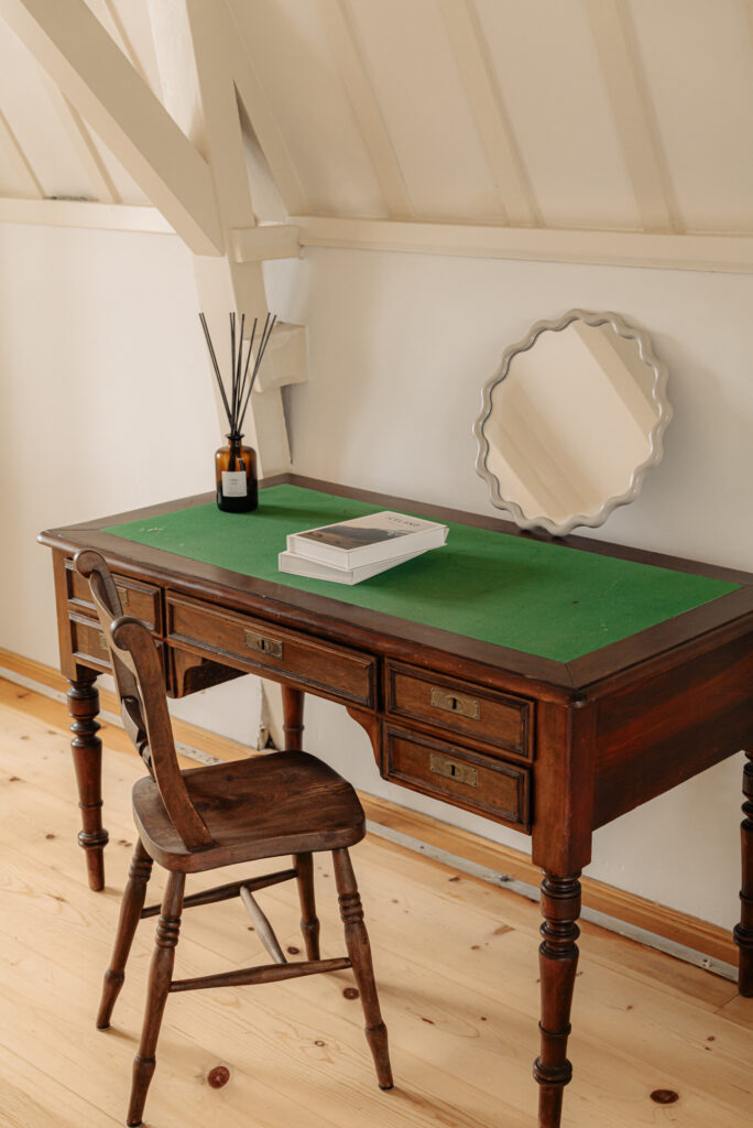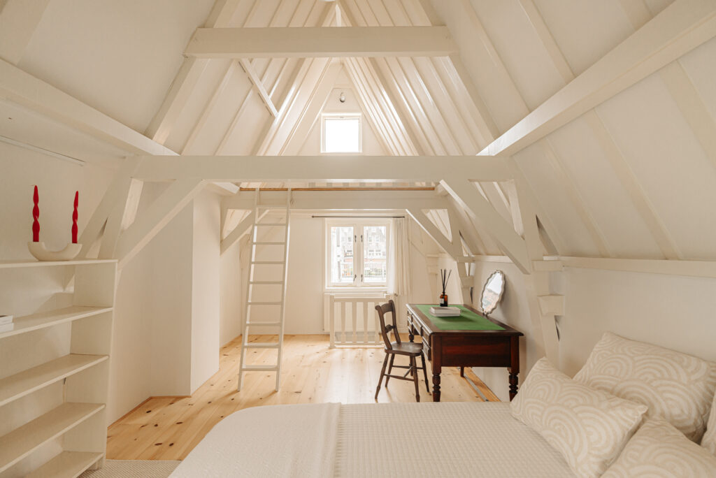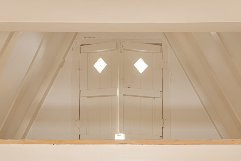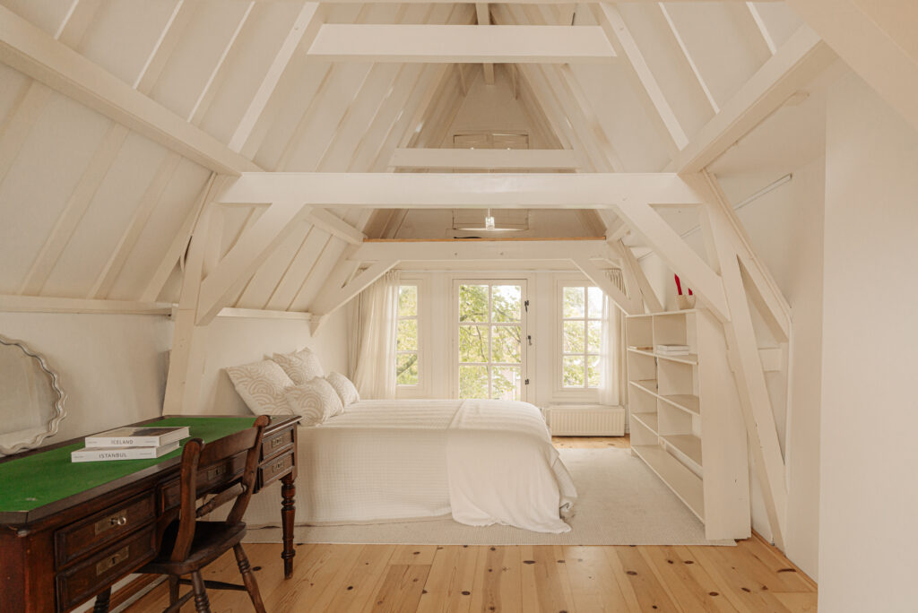 Zolderverdieping: indrukwekkende kapverdieping met zicht op de authentieke 17e-eeuwse balken. Hier is tevens een entresol gecreëerd met extra slaapgelegenheid voor twee personen.