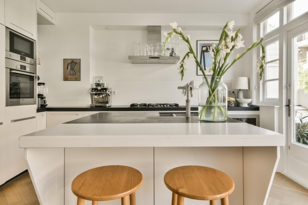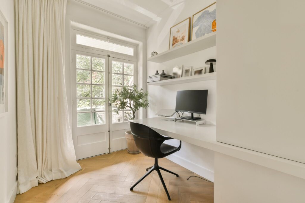 Hall with access to all rooms and equipped with toilet with fountain. At the front of the house you will find the cozy bright seating area with a view of the greenery. The modern kitchen/diner is located at the rear. The kitchen has a five-burner gas stove, dishwasher, refrigerator, freezer, oven, microwave, wine cooler and Quooker. This room also has French doors to the balcony, which runs across the entire width of the apartment. At the front you will also find a nice study/office with a balcony, located on the south.