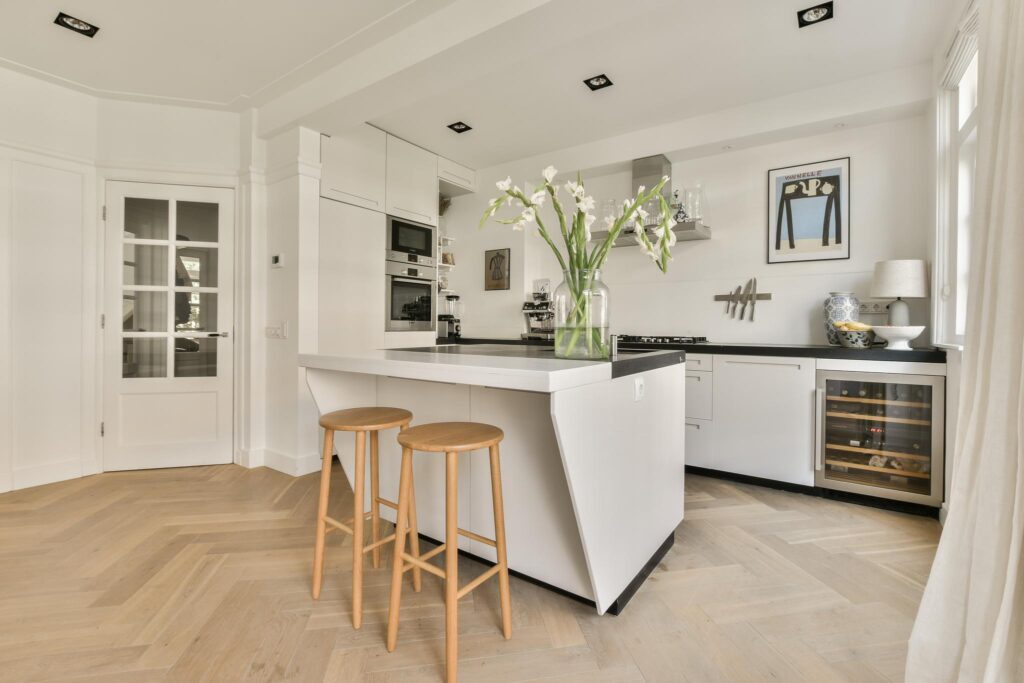 – Entire apartment has a beautiful herringbone floor and various recessed spotlights.