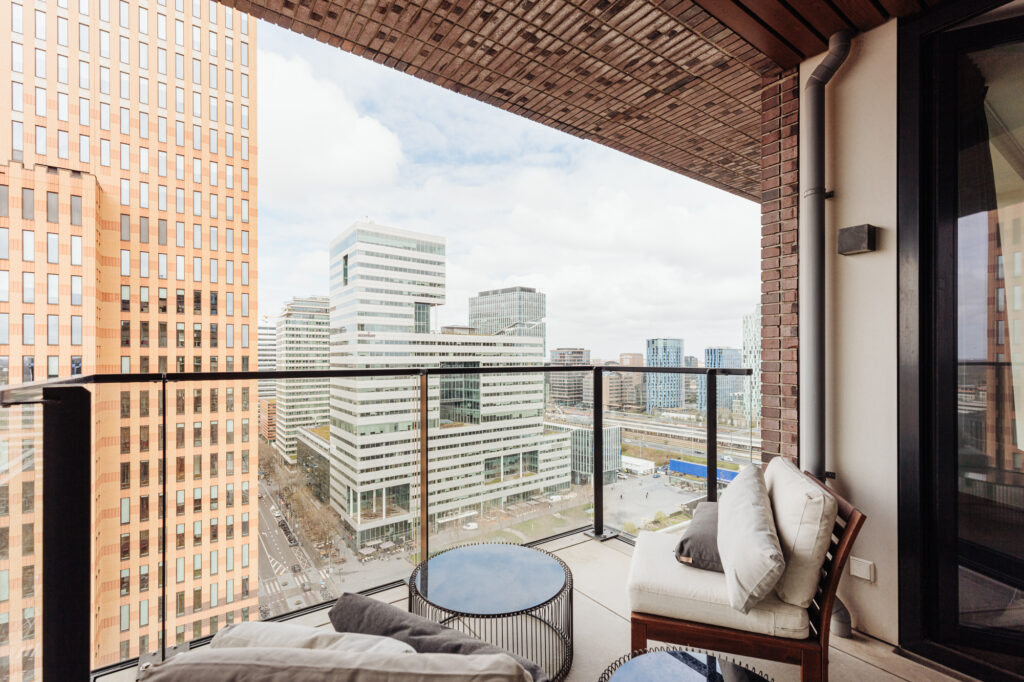 Gustav Mahlerlaan 379, luxurious penthouse with international allure. This beautiful, architecturally, very luxuriously renovated penthouse on the 17th floor of the Xavier building is available for rent in the metropolitan area. The apartment has three bedrooms, two bathrooms and three balconies with spectacular views, an elevator, separate storage room and two parking spaces. Xavier is a complex with character and style. This cosmopolitan apartment is offered furnished and has a living area of no less than 161m², a spacious terrace of 18m².