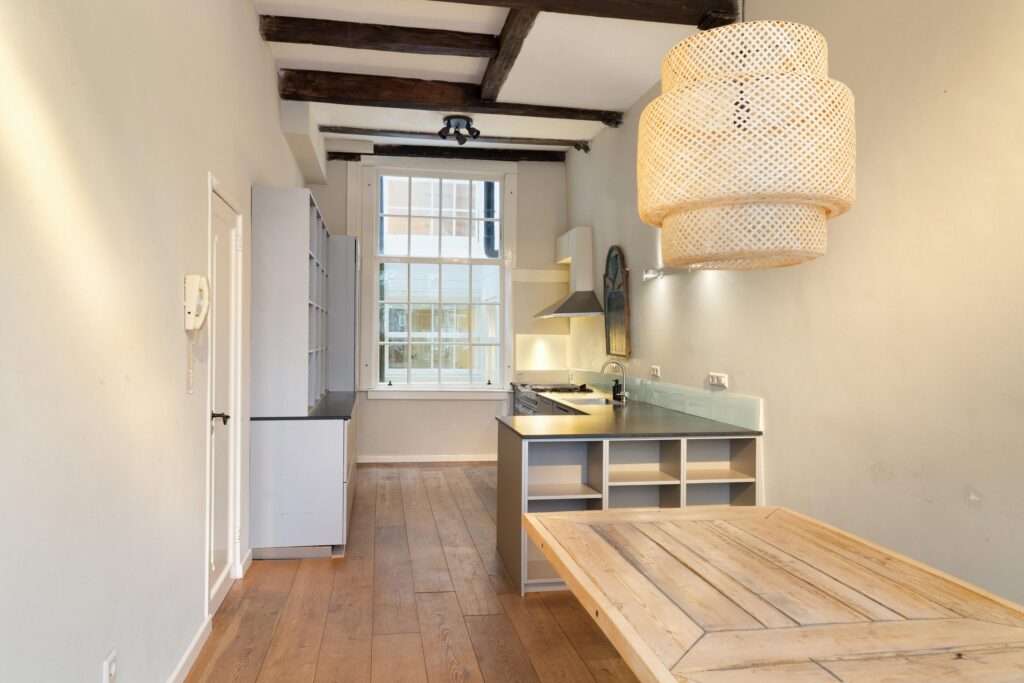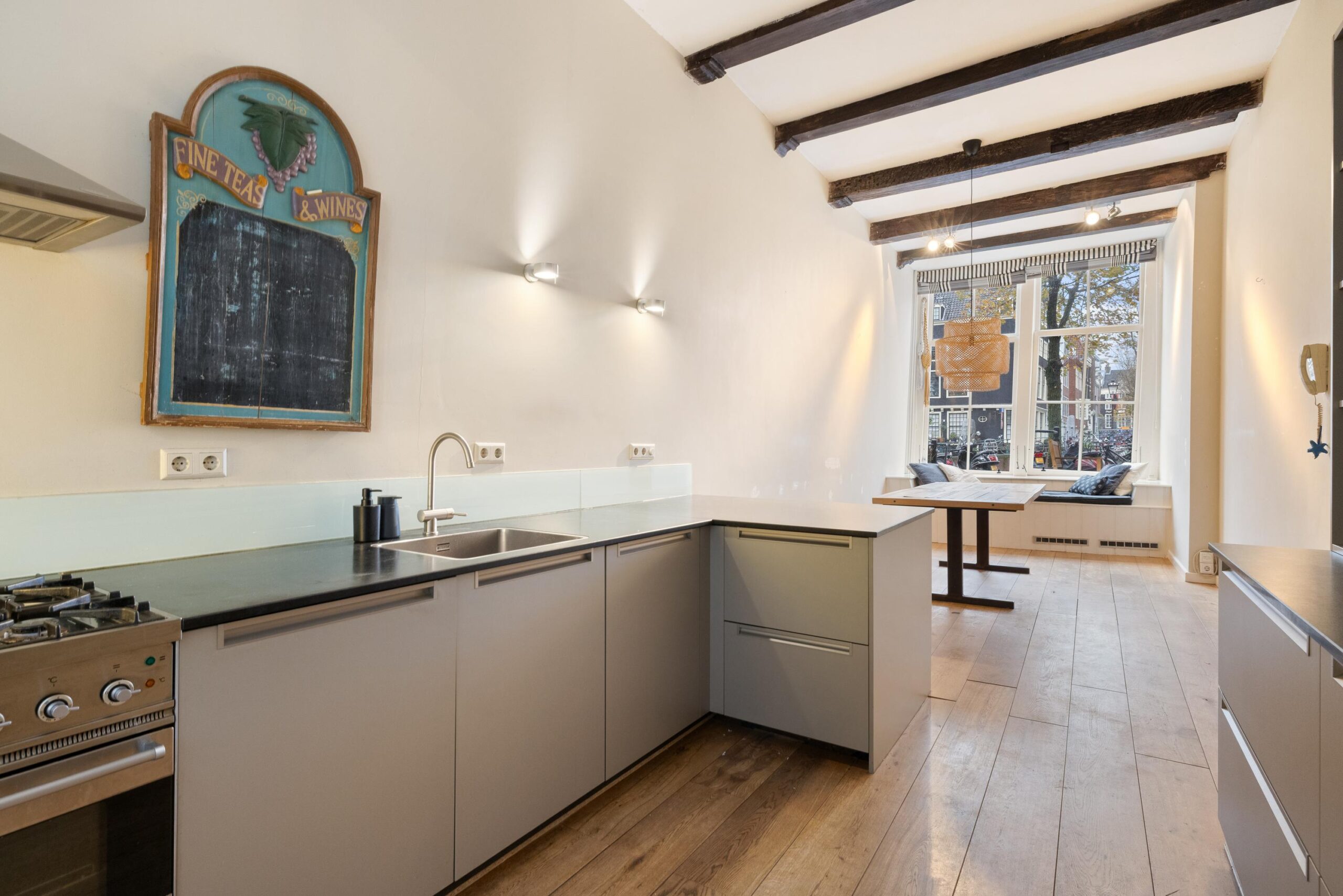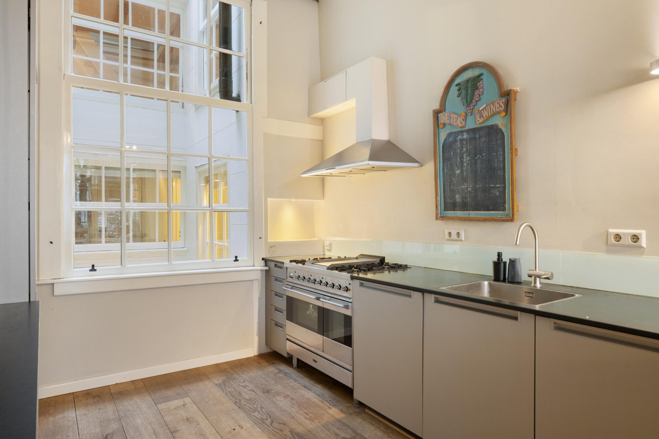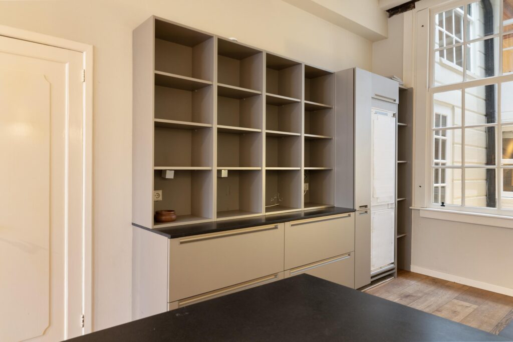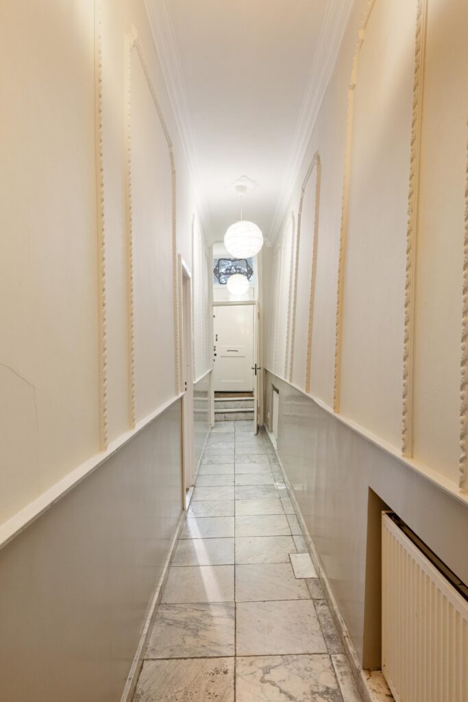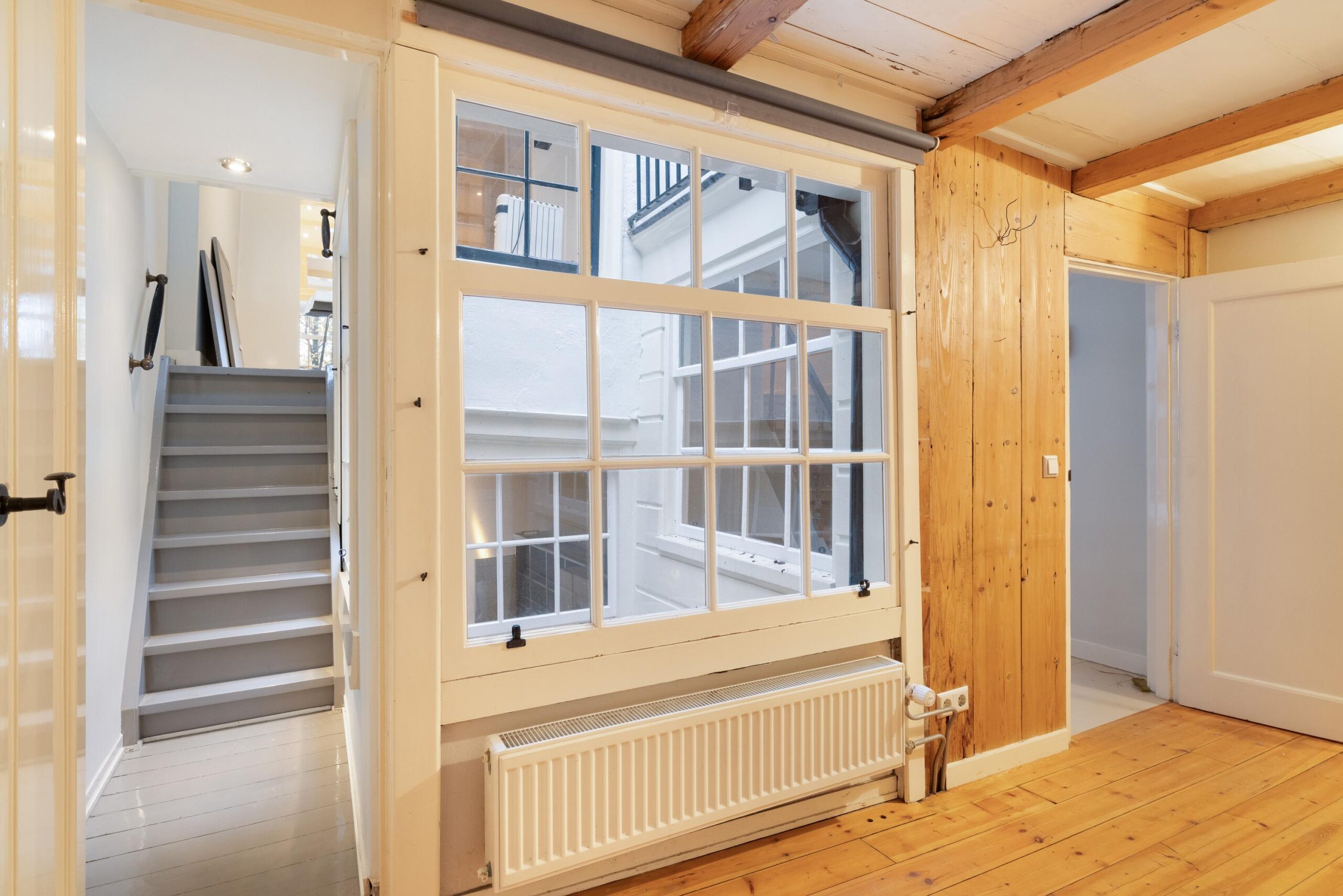 Binnenkomst via een statige entree met originele marmeren vloer. Aan de voorzijde bevindt zich de riante woonkeuken met hoogwaardige inbouwapparatuur en voldoende ruimte voor een grote eettafel. Hier geniet u een prachtig uitzicht over de gracht (auto vrij deel). Het achterhuis biedt op deze verdieping een ruime slaapkamer met eigen badkamer (douche, wastafel) én separaat toilet.