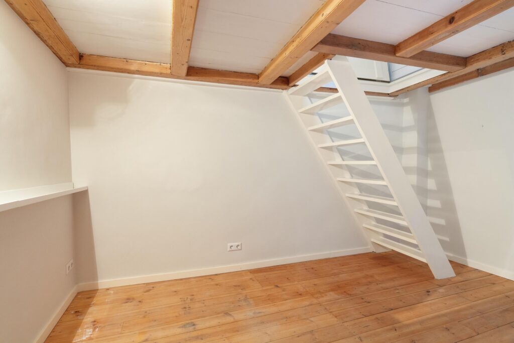 Op de eerste tussenverdieping is een rustige werk- of studeerkamer ingericht. De tweede tussenverdieping beschikt over een compacte kamer die uitstekend dienstdoet als logeer- of kinderkamer. Vanuit hier directe toegang tot het zonnige dakterras, waar u in alle privacy van de buitenlucht kunt genieten.