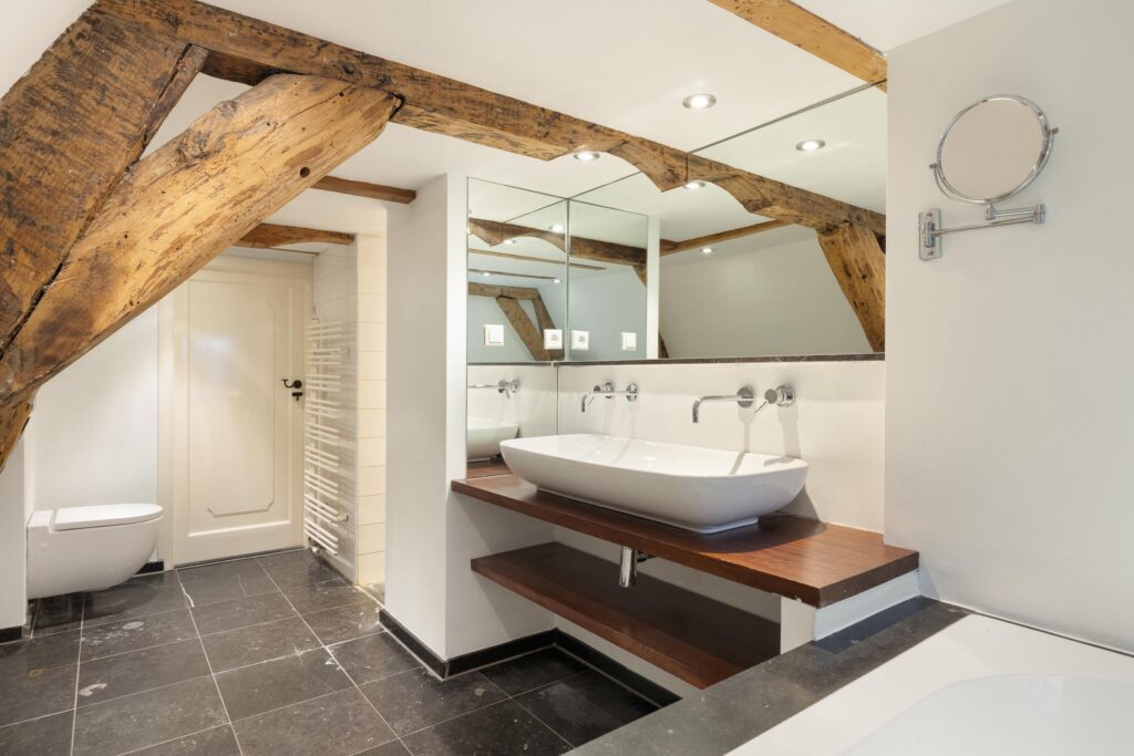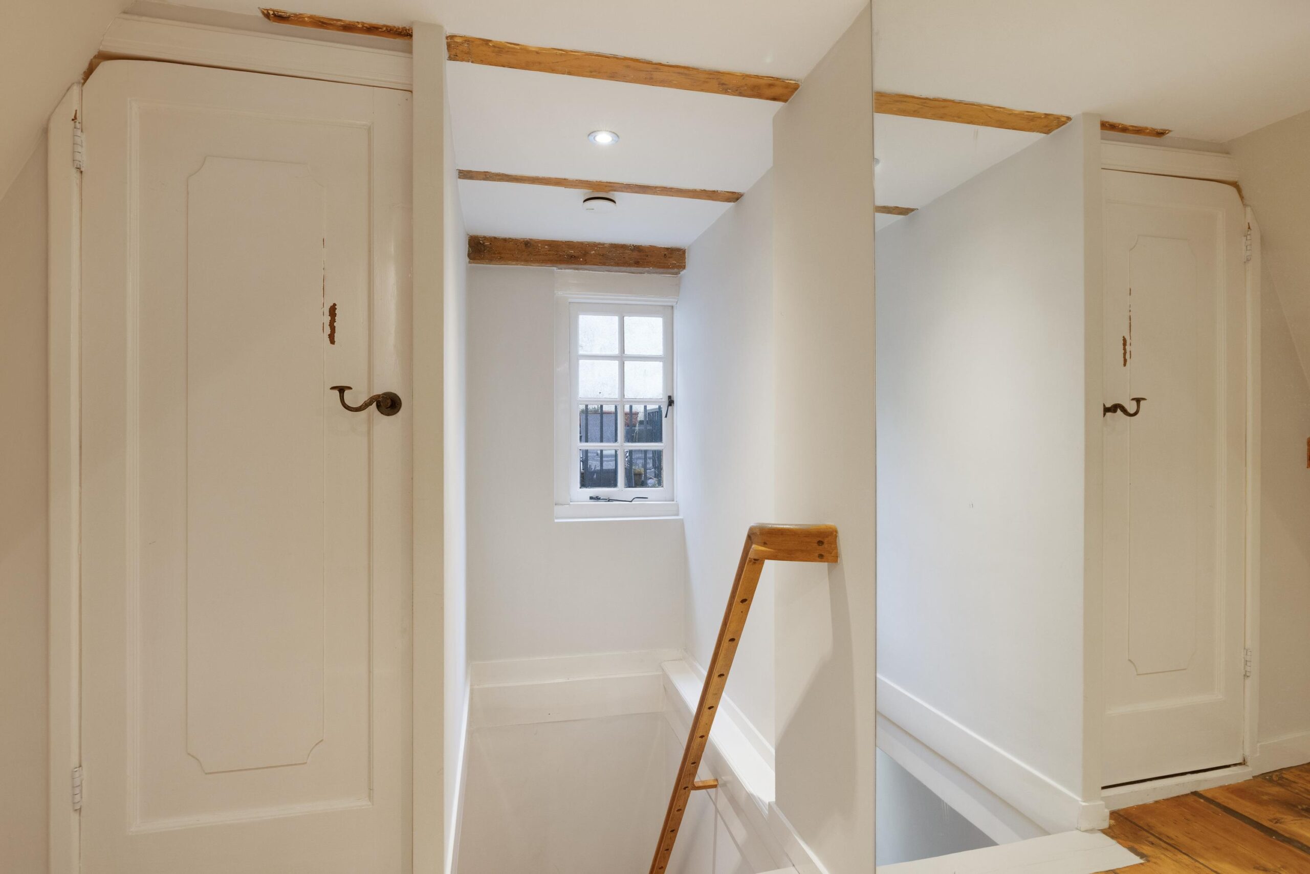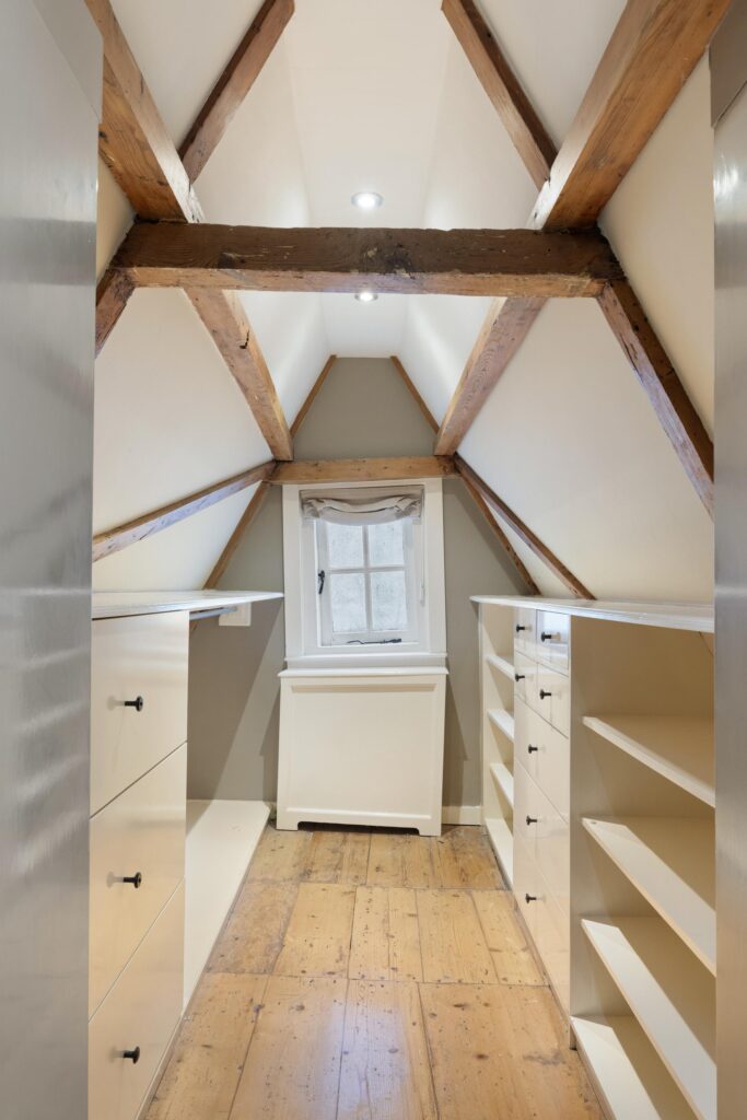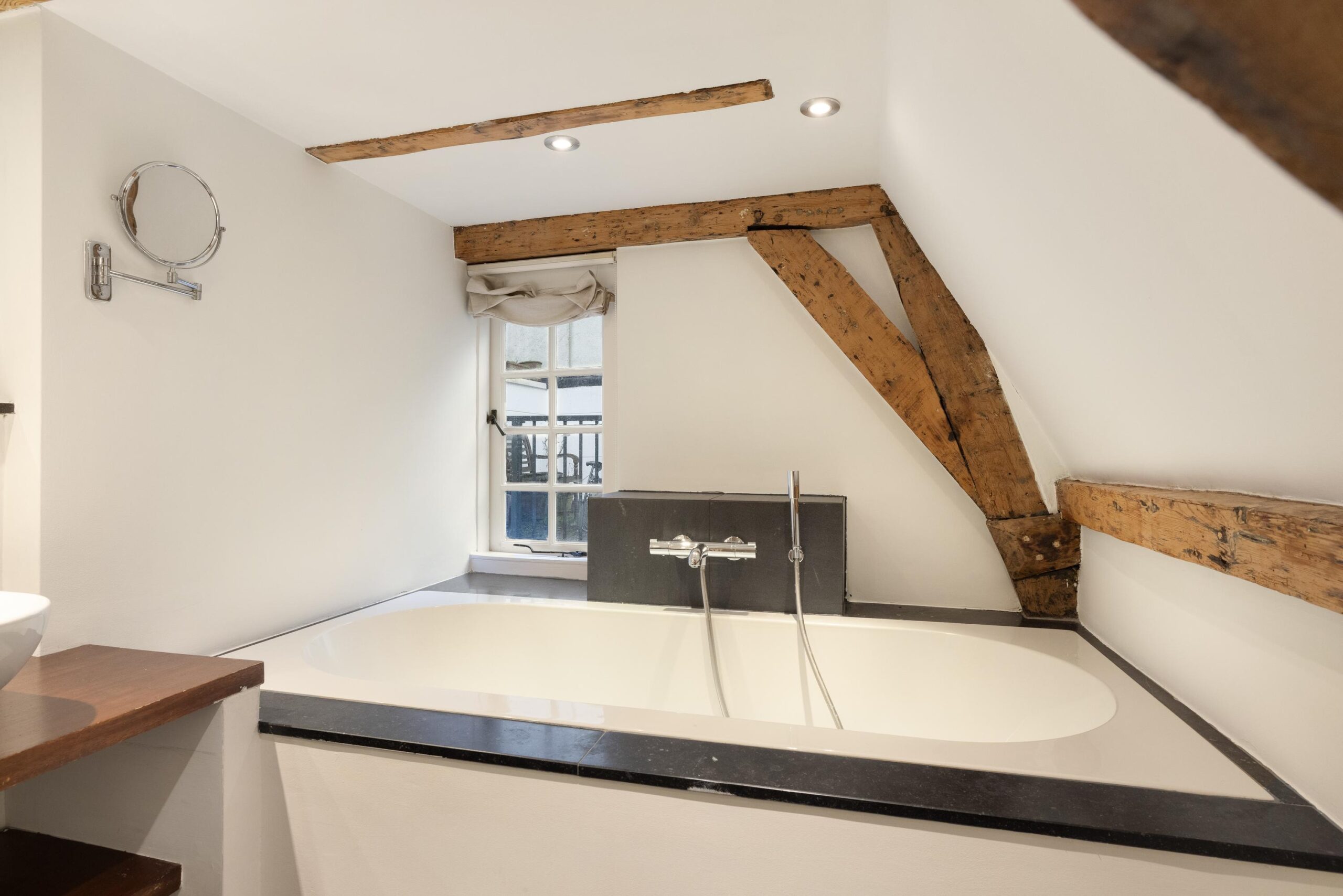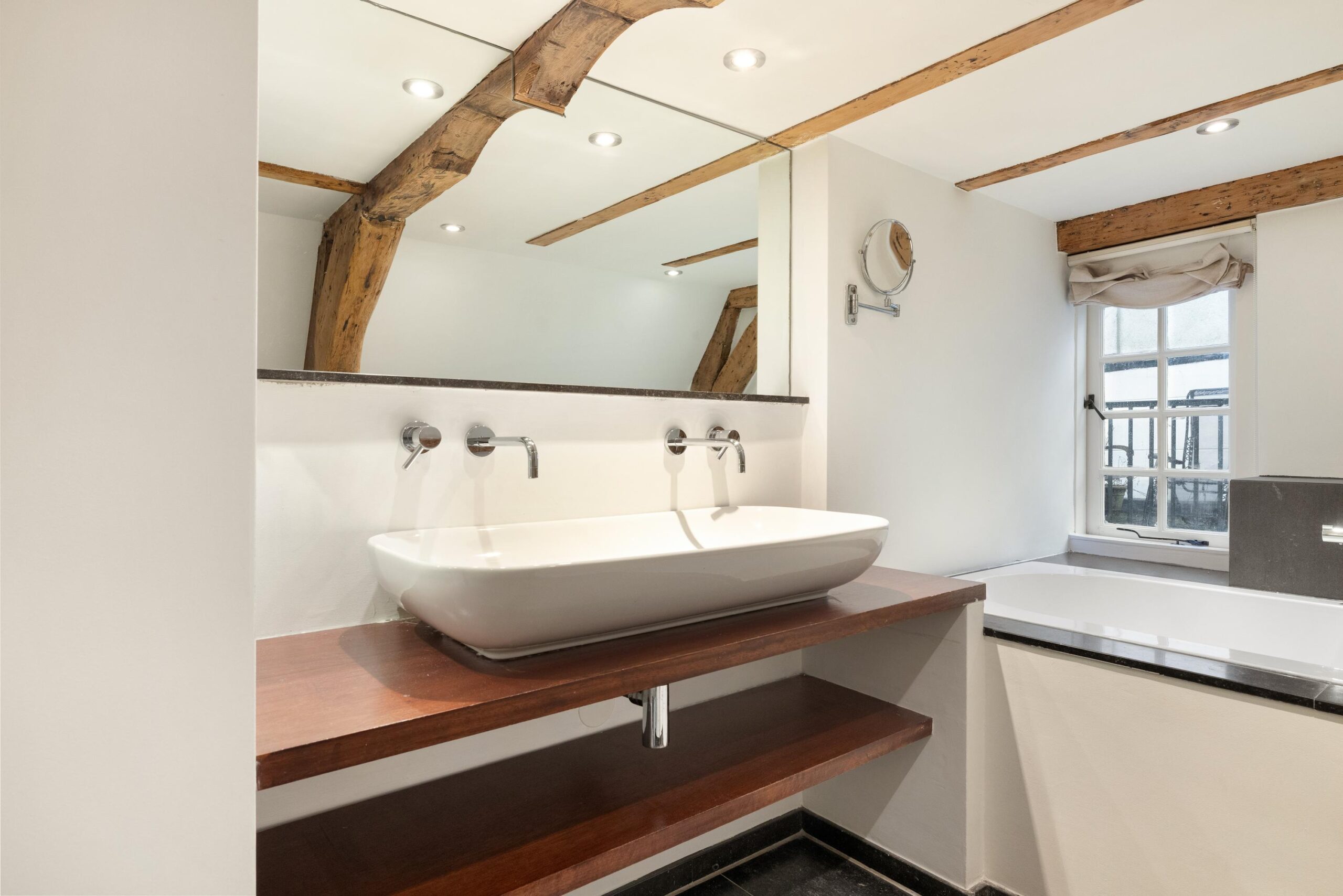 Hier treft u de indrukwekkende master bedroom: loftachtig met originele vloeren en balken, veel daglicht en een entresol. Aangrenzend de ruime badkamer met duo-ligbad, inloopdouche, dubbele wastafel, toilet en vloerverwarming. Op de overloop zijn praktische kasten ingebouwd, een aparte wasruimte en een ingenieuze kleedkamer in de kap met bergruimte aan weerszijden.