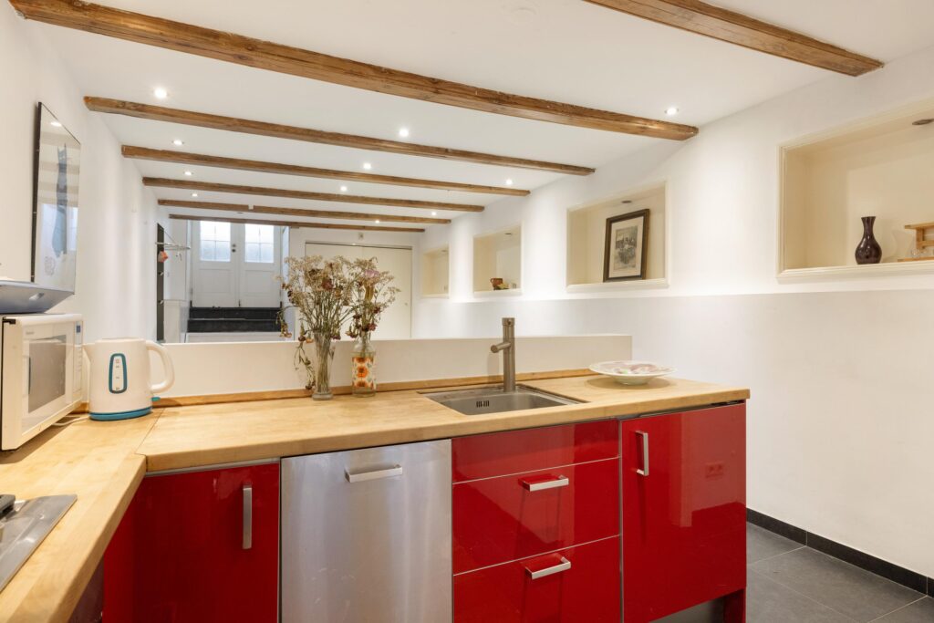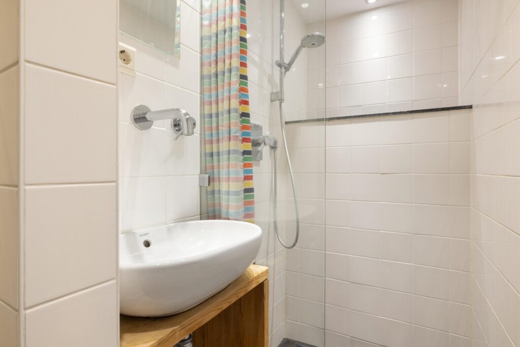 Volledig uitgediept en vernieuwd in 2011. Deze zelfstandige verdieping beschikt over een gezellige woonruimte met open keuken, patio, slaapkamer met moderne badkamer en separaat toilet. Dankzij de eigen entree aan de gracht én interne trap naar het woonhuis is deze verdieping veelzijdig te gebruiken: gastenverblijf, werkruimte, atelier, verhuur of au-pair.