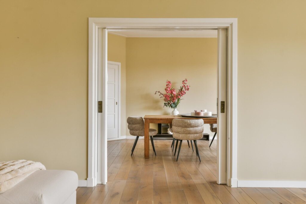Through the beautiful, stately lobby, the elevator takes you to the apartment on the third floor. Coming in through the apartment’s wide entry, you reach the central hallway which leads to the spacious living and dining rooms. Both have large windows and enjoy plenty of sunlight. They look out onto the garden and the tennis court.