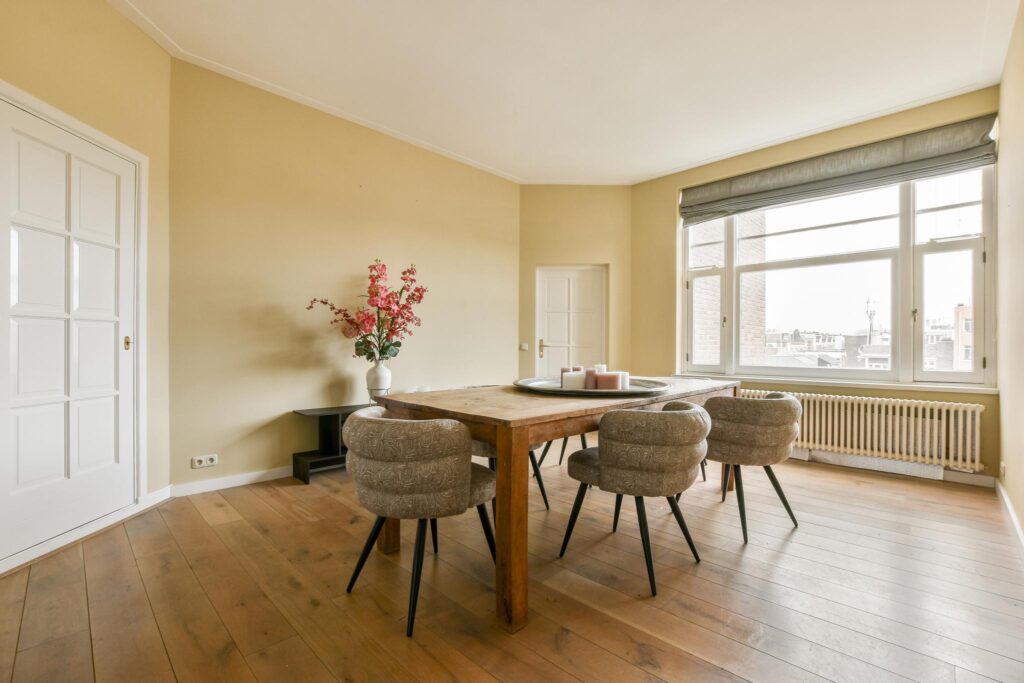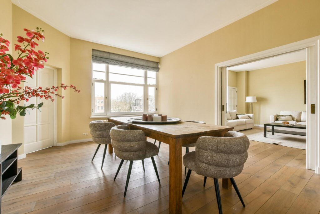 This elegant apartment is located in the Concertgebouw neighbourhood, in the extraordinary building ‘Oldenhoeck’ designed by noted architect Philip Warners in 1926. The bright, five-room apartment measures 211 square metres on one level on the third floor, reachable by elevator and stairs.