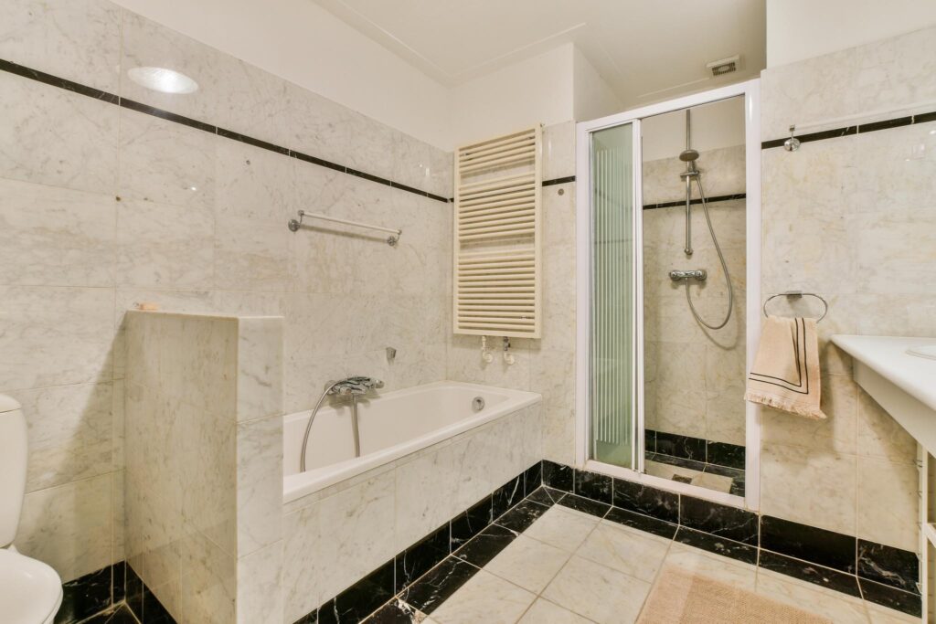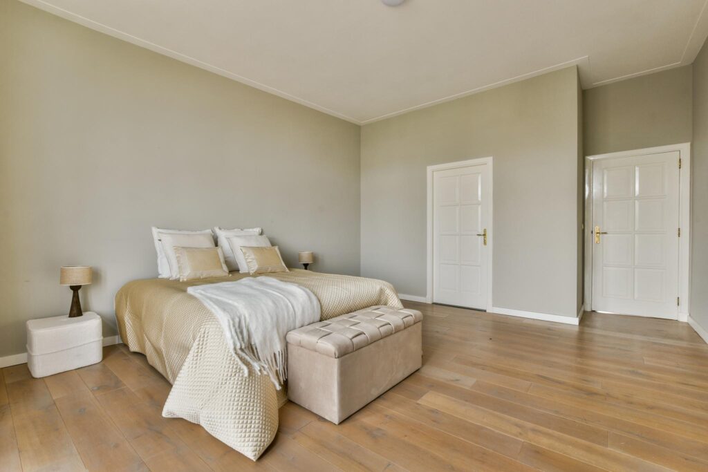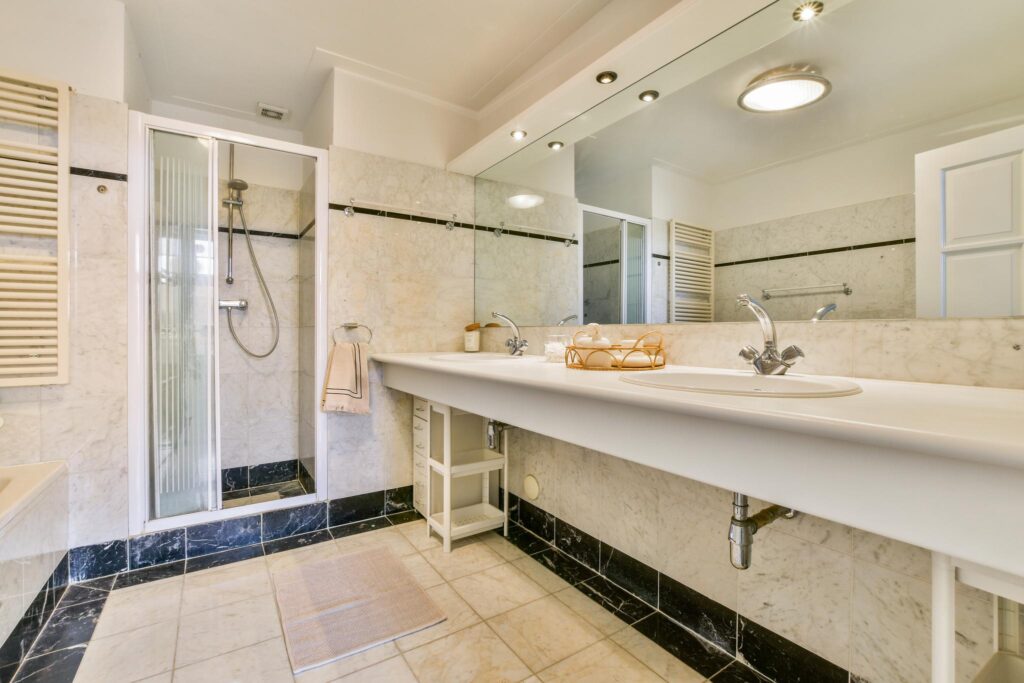 De twee ruime slaapkamers beschikken beiden over directe toegang tot een eigen badkamer. De master bedroom heeft tevens toegang tot het balkon, een ruime badkamer met ligbad, separate douche, dubbele wastafel en toilet. De tweede slaapkamer, met aangrenzende badkamer, is voorzien van een douche, wastafel en toilet. Momenteel is er een zeer riante werkkamer aan de voorzijde gelegen, met mooie inbouwkasten. Het is eventueel mogelijk deze werkkamer ook als slaapkamer te gebruiken.