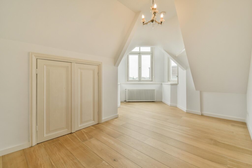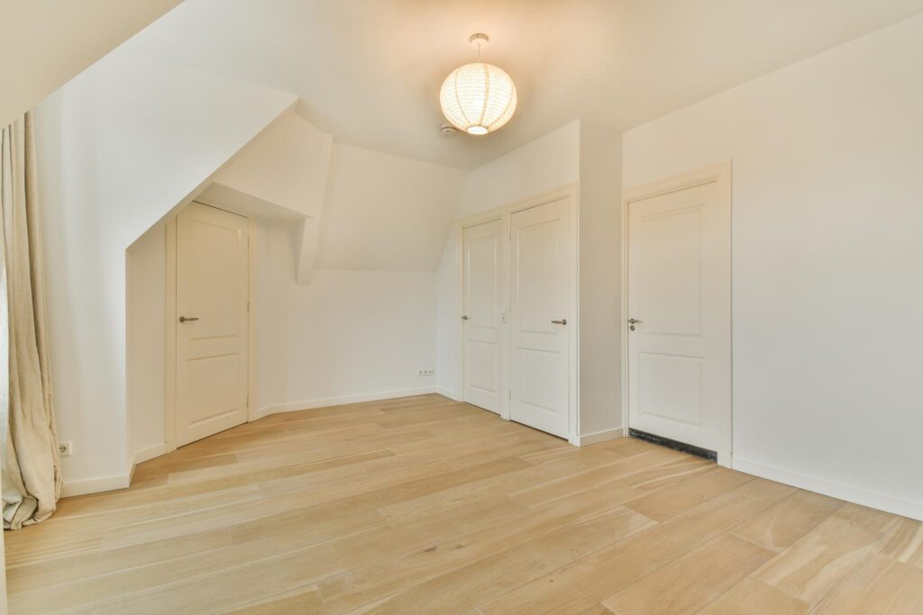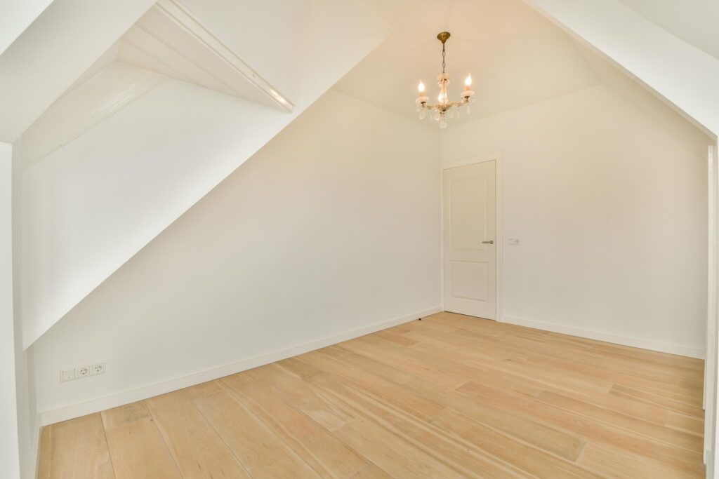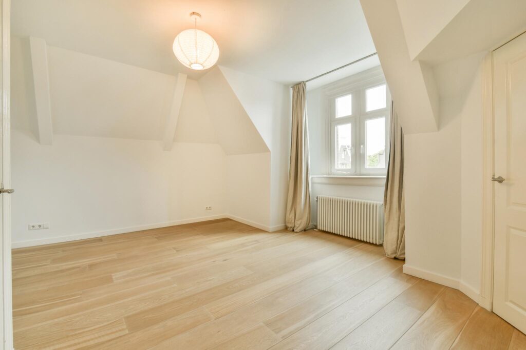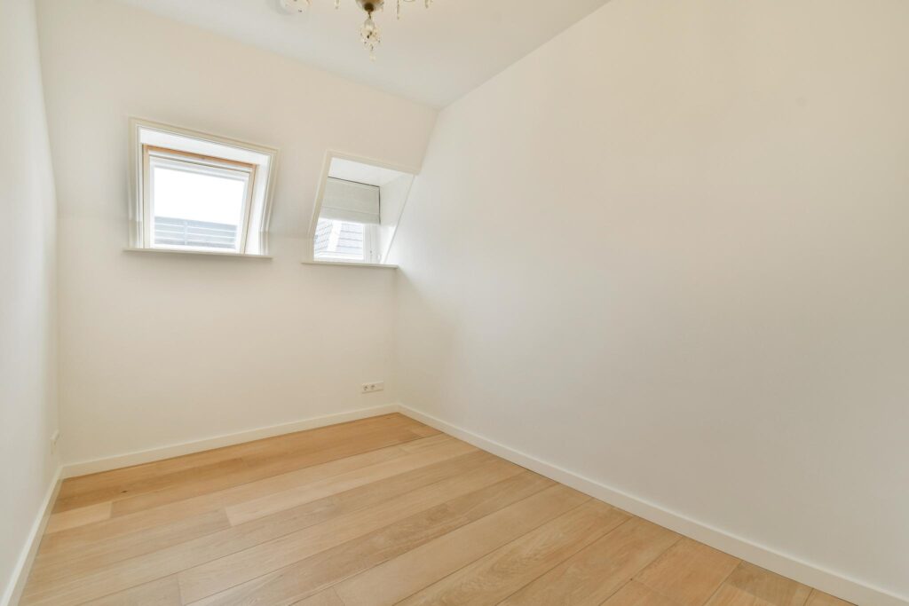Second bedroom: is spacious and has various fitted wardrobes and storage space. This room also has a unique turret, which offers an amazing view over the Sophialaan and Vondelpark behind it.