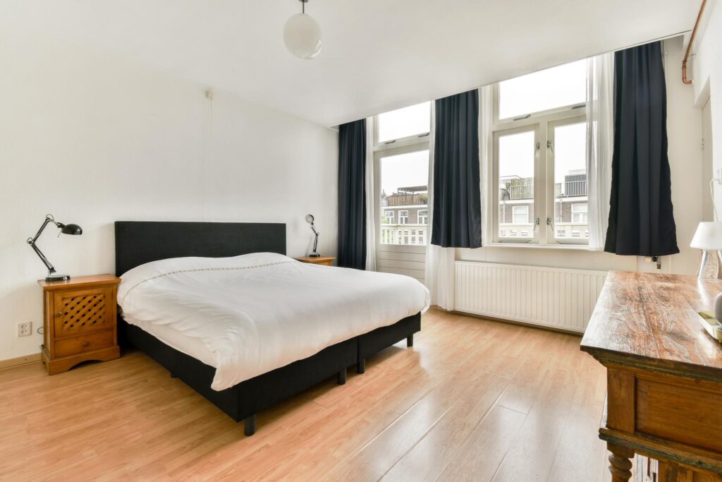 De slaapkamer is gelegen aan de achterzijde van de woning, welke diverse inbouwkasten geniet. Middels de slaapkamers heeft u tevens toegang tot het heerlijke balkon welke op het Zuiden gelegen is. Ook heeft u vanuit de slaapkamer directe toegang tot de badkamer, welke beschikt over een ligbad, douche, wastafel en toilet. De aansluiting voor wasmachine/droger bevindt zich in de badkamer.