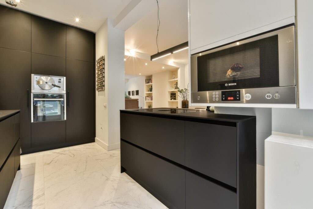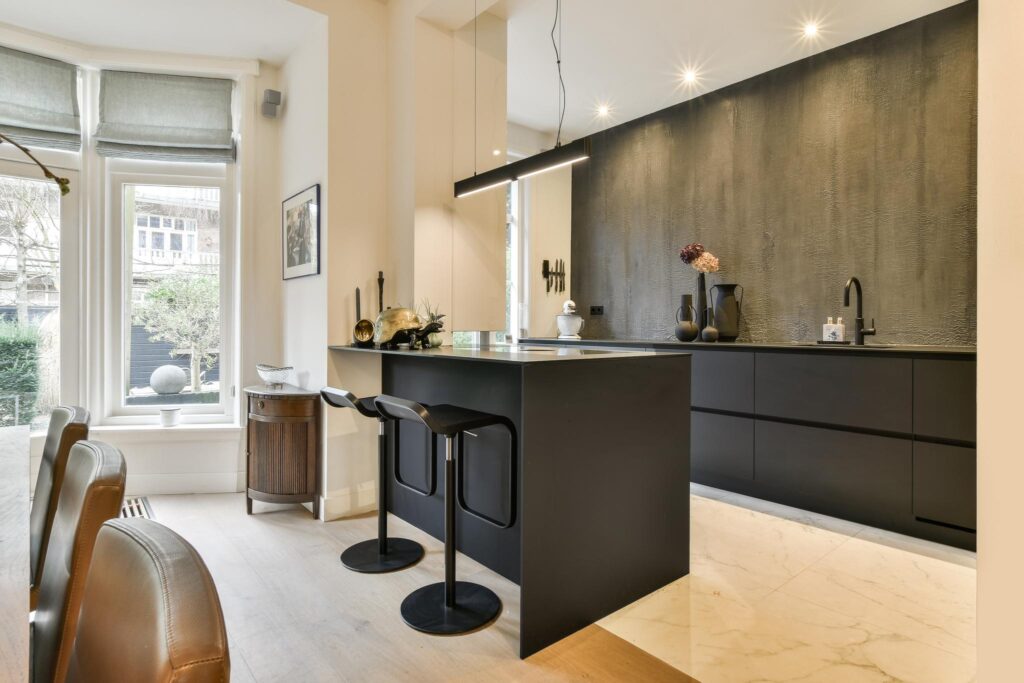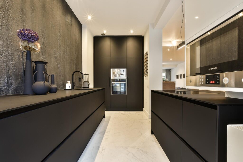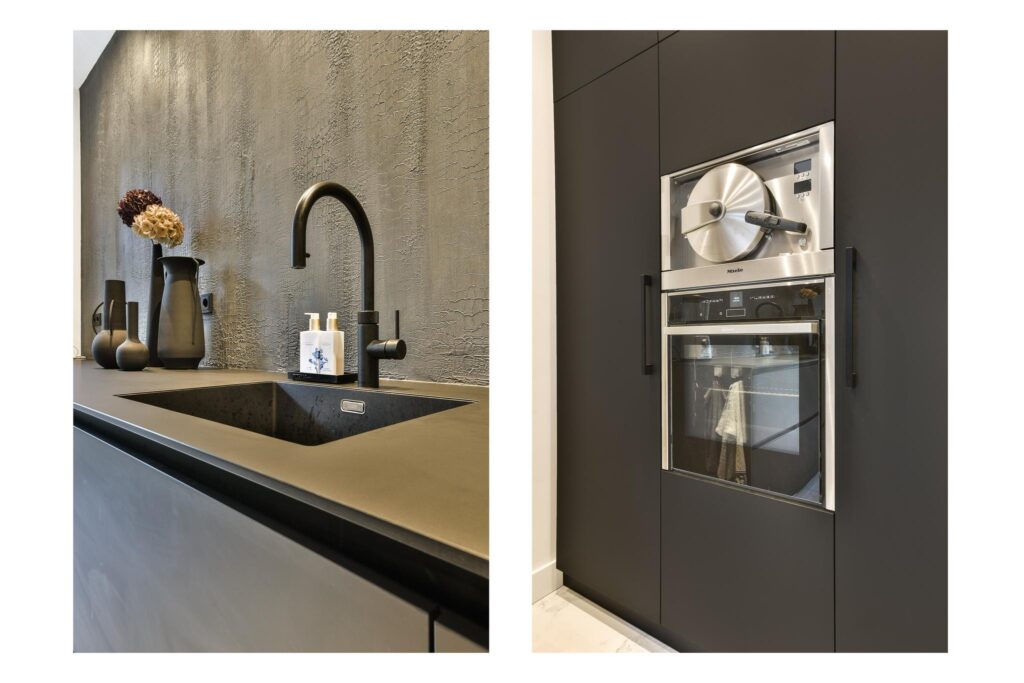 De moderne keuken (geplaatst in de zomer van 2021) is voorzien van alle denkbare apparatuur, waaronder een extra grote Bora inductiekookplaat, Smeg oven, Bosch magnetron, Miele hoge druk stoomoven, Quooker, grote ijskast, grote vriezer en een afwasmachine. Al deze apparatuur is van Siemens. Aan het kookeiland kun je ook gezellig borrelen of ’s ochtends je krantje lezen. De muur aan de achterwand is op een bijzondere manier gestuukt waardoor een reptielenprint is ontstaan. Deze is bovendien afwasbaar.
