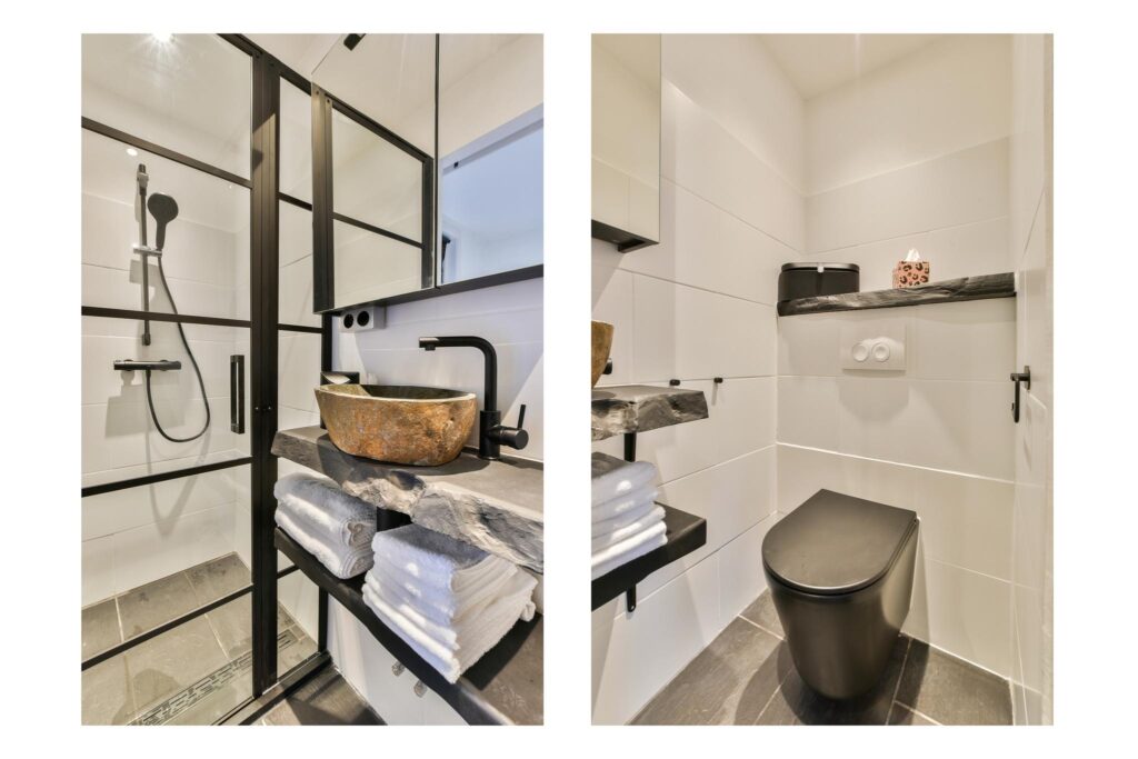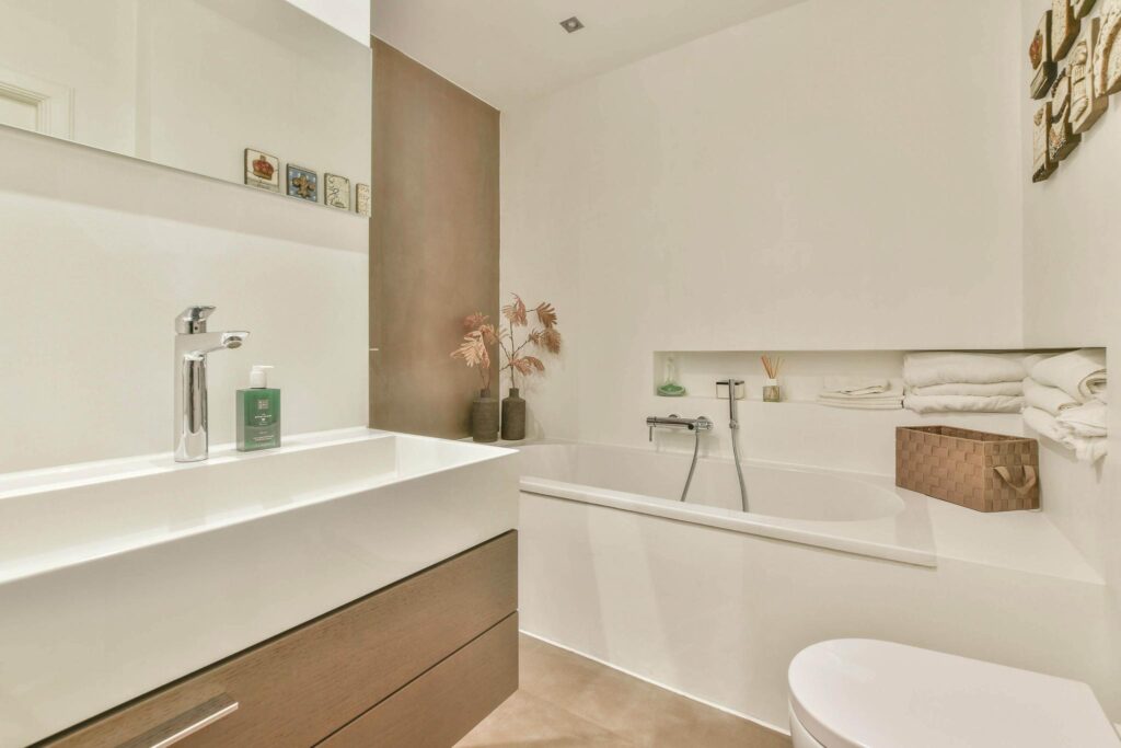 De badkamer is voorzien van een inloopdouche, design radiator, extra groot ligbad, een groot badkamermeubel met lade, een toilet met douchefunctie en is tevens in 2021 volledig nieuwe gestuukt.