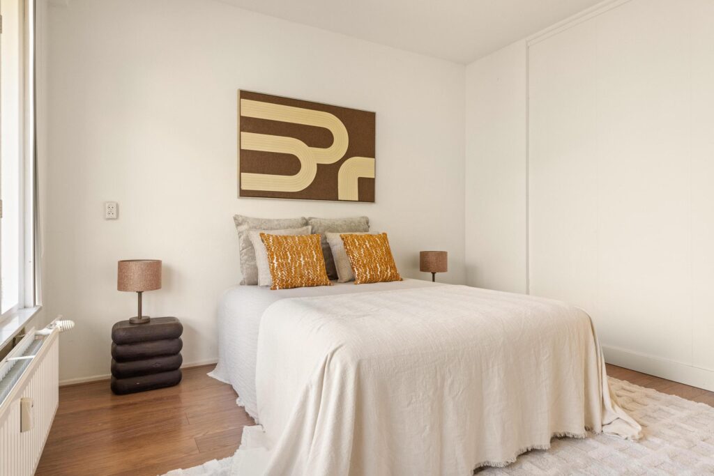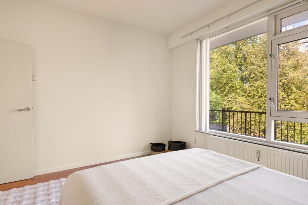 Het appartement beschikt over twee goed bemeten slaapkamers. De eerste slaapkamer bevindt zich aan de achterzijde, terwijl de tweede slaapkamer aan de voorzijde is gelegen. Beide kamers zijn ruim genoeg voor een tweepersoonsbed en kastenwand, en kunnen uiteraard ook dienstdoen als werkkamer of logeerkamer.