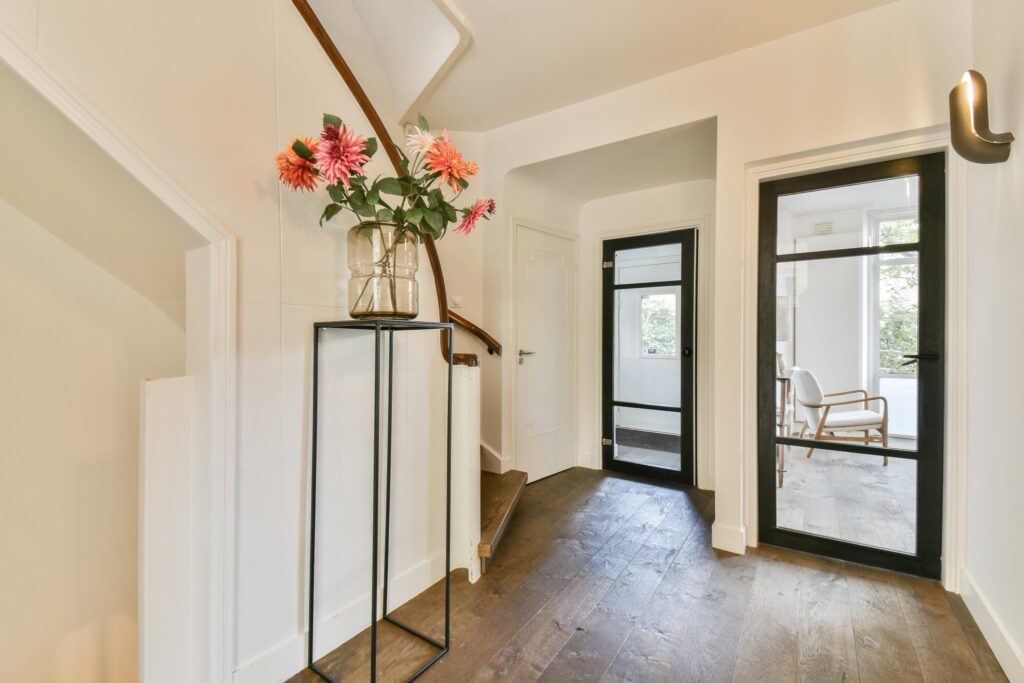 Middels de voortuin mét naastgelegen oprit bereikt u via de bordestrap de entree van de woning.