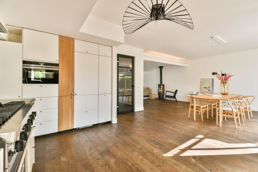 Het zitgedeelte is gelegen aan de voorzijde van de woning en voorzien van een draaibare houtkachel welke de sfeer vergroot tijdens de koude dagen. Aan de achterzijde is de ruime woonkeuken gelegen, direct grenzend aan de keuken is de bijkeuken gelegen.