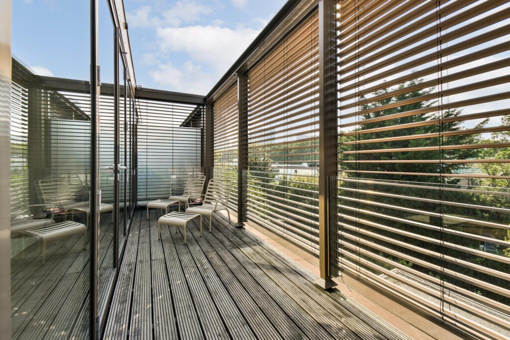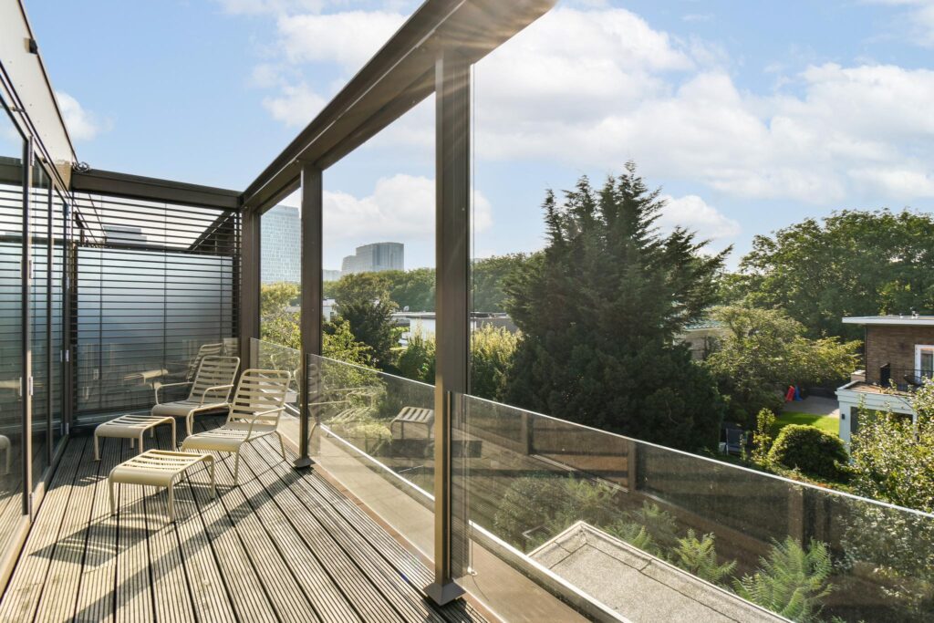 De master geniet grote glasvlakken en een volledig wegschuivende harmonicadeur, zodat het aangrenzende terras totaal bij de slaapkamer te trekken is. Daar de kamer een shutter systeem geniet, welke middels een afstandbediening bedienbaar is, kunt u niet alleen de shutters omhoog en omlaag laten gaan maar kunt u ook de de stand van de shutters bepalen. Doordat de shutters ook rondom het terras zijn aangebracht kunt u op warme dagen zelfs buiten slapen zonder dat dit ten koste gaat van de privacy.