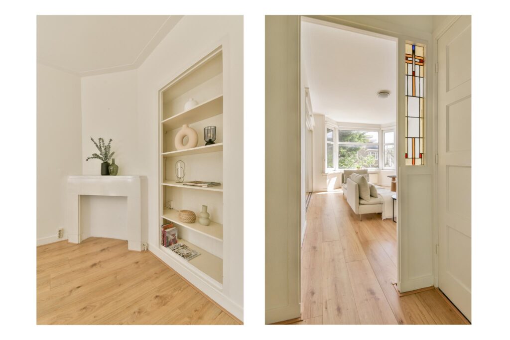 Hall met toegang tot alle vertrekken. De lichte en riante woonkamer is gelegen aan de voorzijde van het appartement en geniet een weids uitzicht over de buurt. Aangrenzend de eetkamer welke afgesloten kan worden van de woonkamer middels authentieke glas-in-lood schuifdeuren. De keuken is gelegen aan de achterzijde en heeft de beschikking over een 5-pits gasfornuis. Ook de slaapkamers bevinden zich aan de achterzijde. Zowel de slaapkamers als de keuken bieden allen toegang tot het heerlijke balkon welke op het Noord/Oosten gelegen is. Uiteraard beschikt het appartement ook over een badkamer voorzien van douche en wastafel en is er een separaat toilet aanwezig.