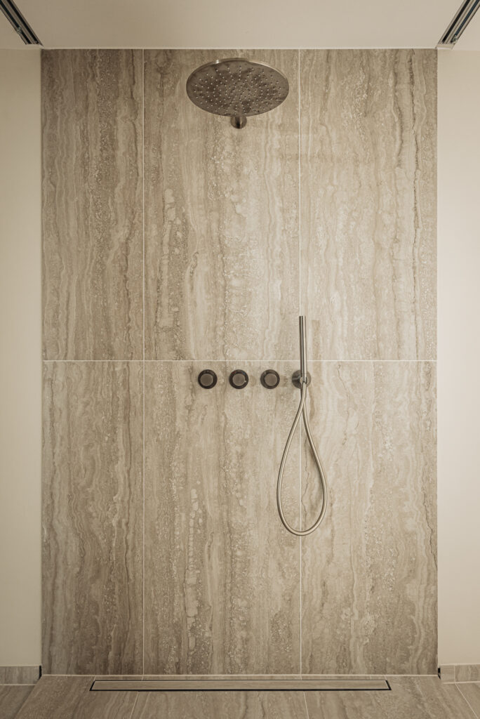 De badkamer is voorzien van een regendouche en handdouche.