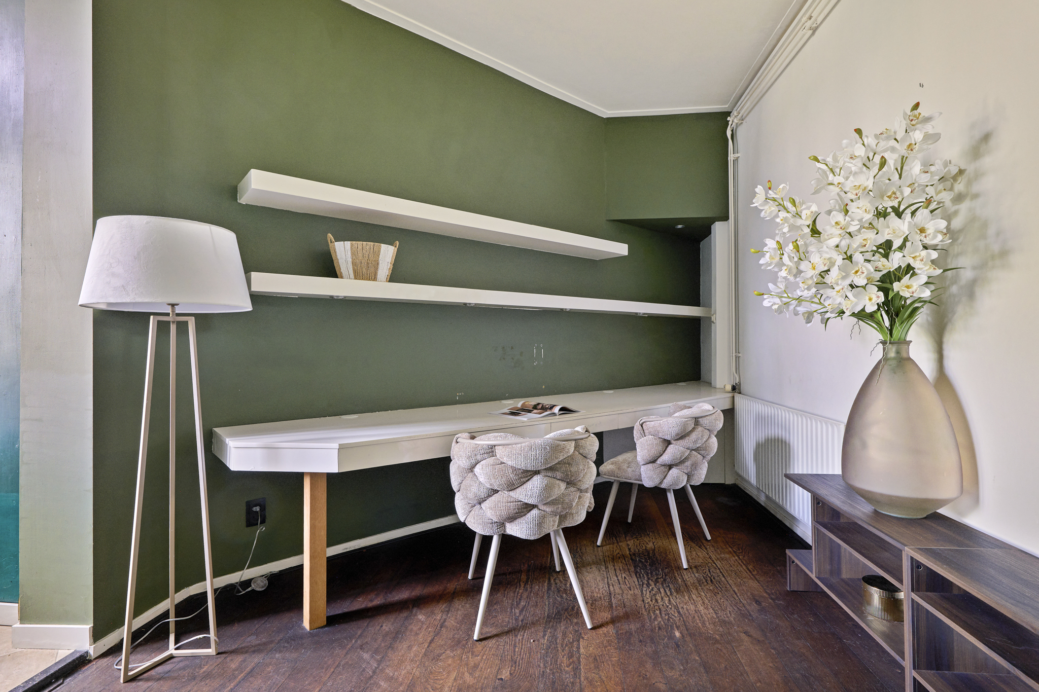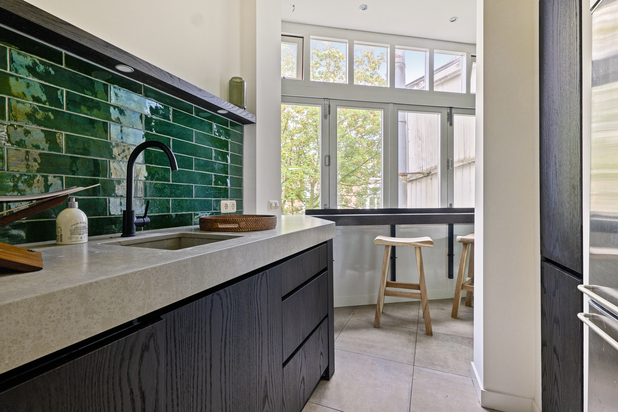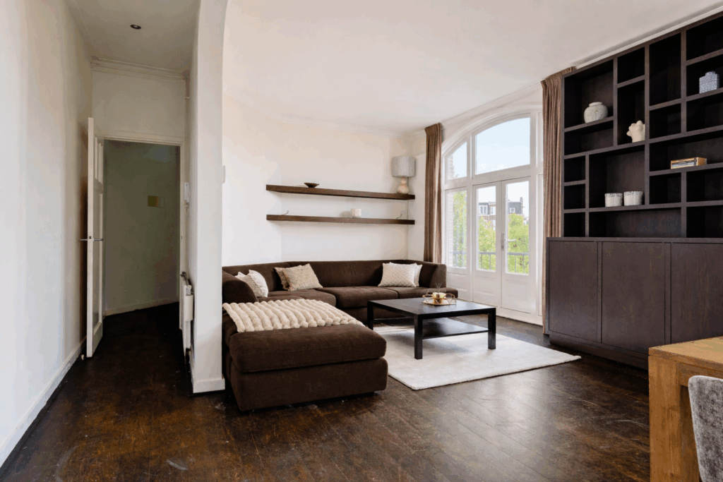 Middels de hal heeft u directe toegang tot de riante lichte woonruimte gelegen aan de voorzijde met hoge plafonds, een zitgedeelte en een eetkamer. Door de vele ramen is er veel daglicht en middels de openslaande deuren naar het terras een weids uitzicht over de Sophialaan/Amstelveenseweg. De riante keuken gelegen aan de achterzijde is van alle denkbare inbouwapparatuur voorzien, o.a. een vijf-pits gasfornuis, vaatwasser, combi magnetron/oven en een koffiemachine van het merk Siemens. De keuken heeft eveneens grote ramen welke helemaal opengezet kunnen worden, waardoor het lijkt of het een inpandig balkon betreft. Middels een verstelbare bar kunt u hier de zon zien opkomen en heeft uitzicht op het groen van de binnentuin. Tevens is een slaapkamer gelegen aan de voorzijde van de woning en beschikt over een ingebouwde hoogslaper, bureau, airco en heeft toegang tot een balkon. Er is een tweede kamer aan de achterzijde, welke momenteel in gebruik is als study en geniet een grote ingebouwde werktafel, deze kamer is simpel om te toveren tot extra slaapkamer.