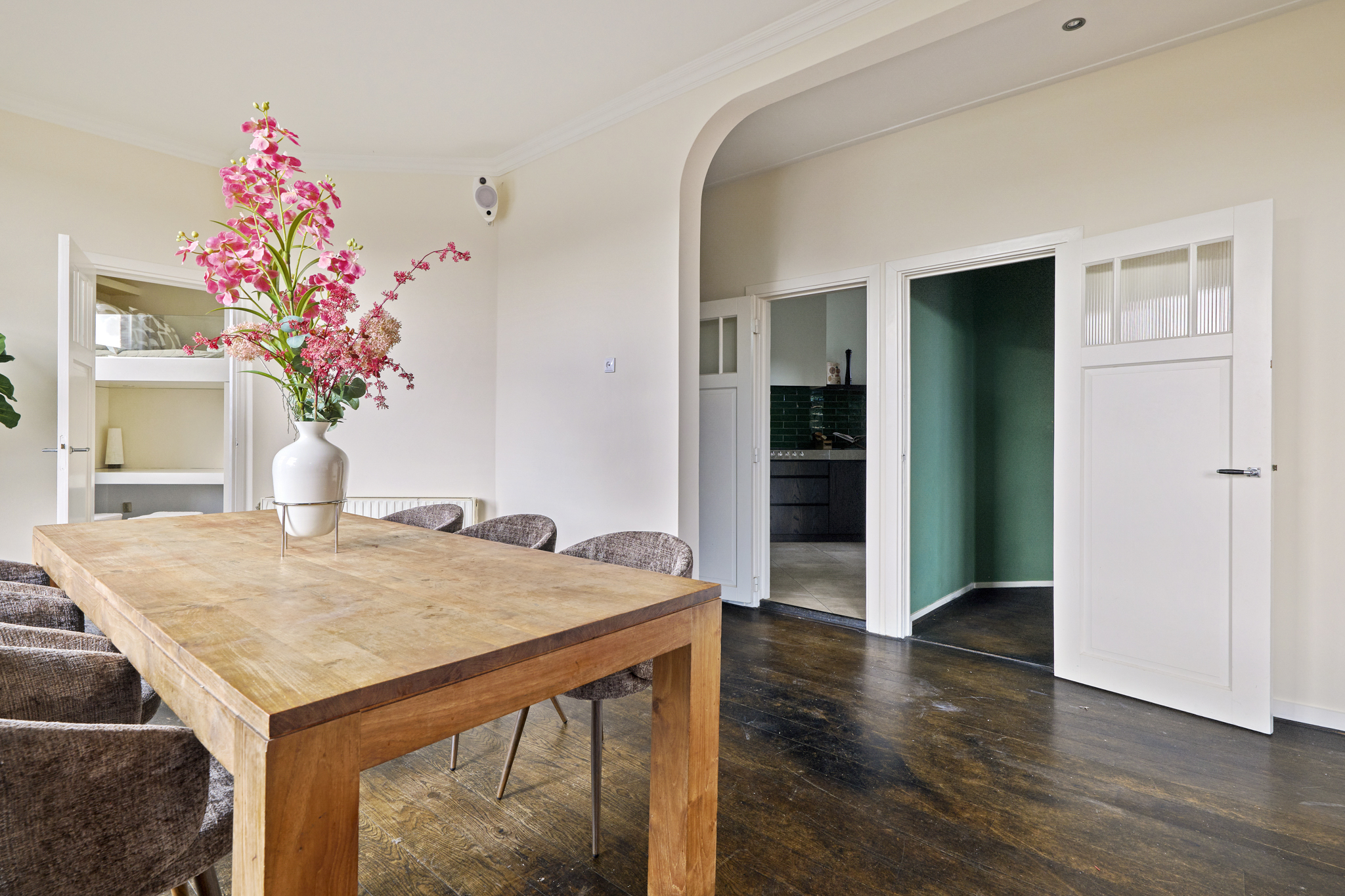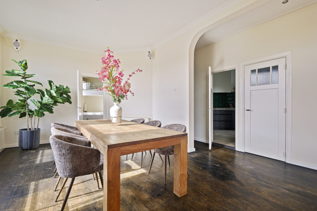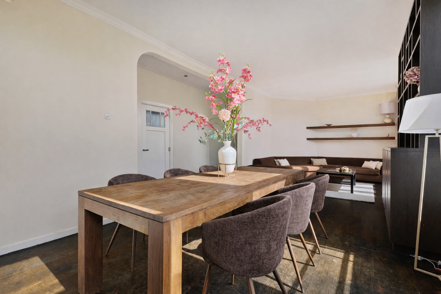 Met het gemeenschappelijk trappenhuis bereikt u de woning gelegen op de derde en vierde verdieping.