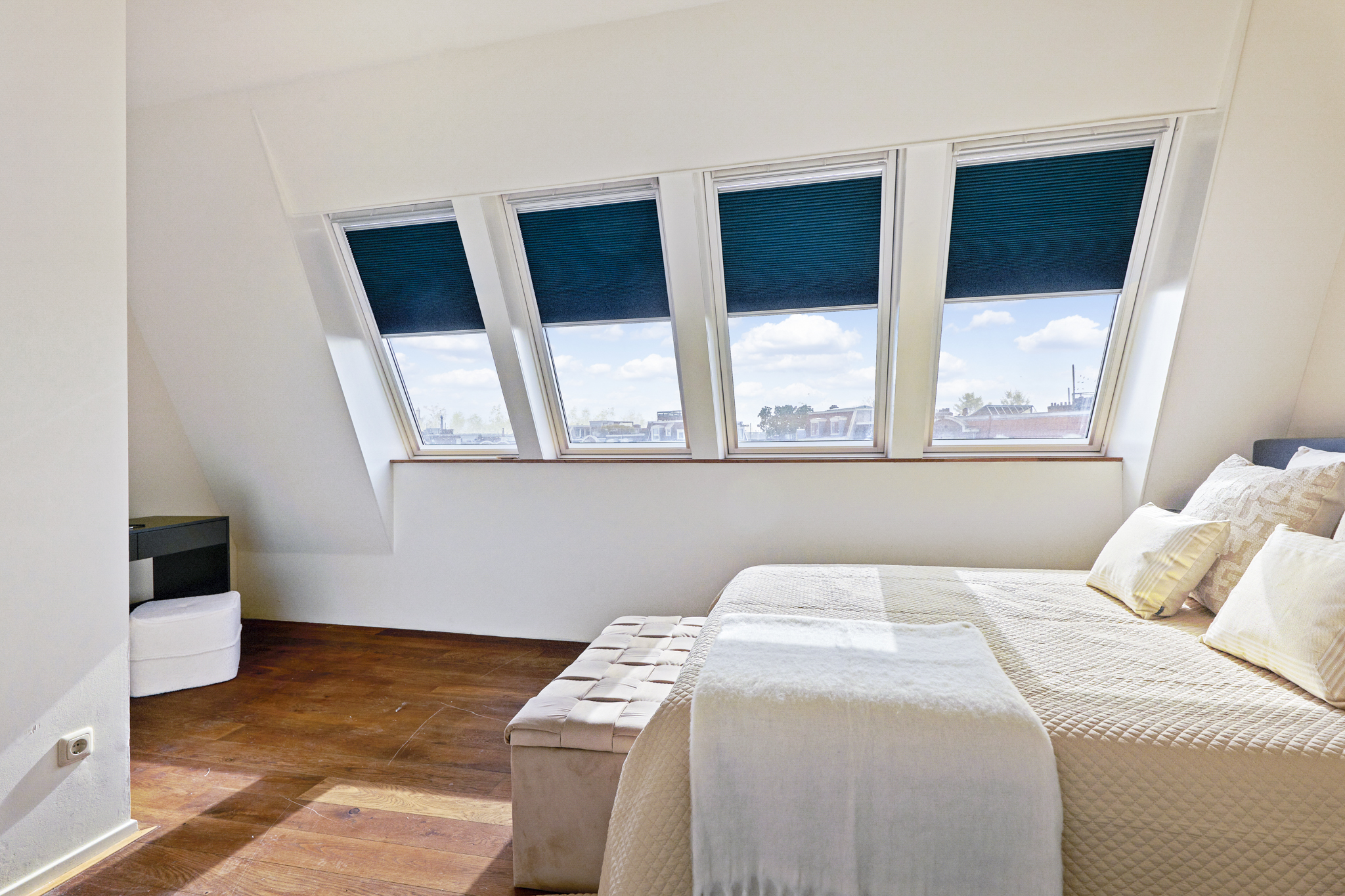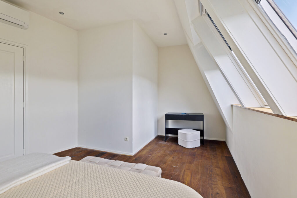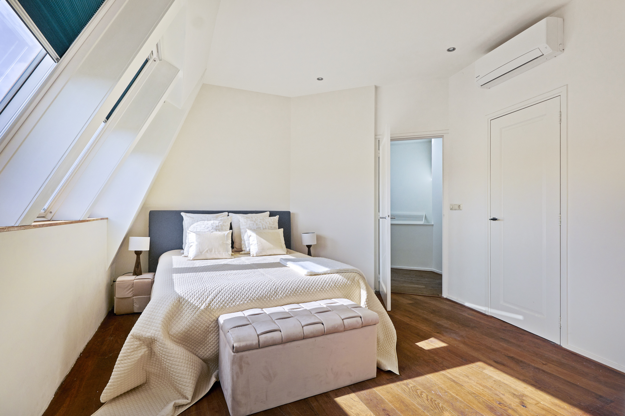 Aan de voorzijde treft u de master bedroom met airco, voorzien van maar liefst vier grote veluxramen, waardoor de ruimte veel licht en een breed uitzicht geniet. Naast de slaapkamer treft u een walk-in-closet met vele kasten en bergruimte.