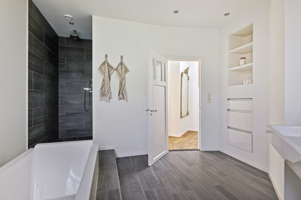 Ook is op deze verdieping de ruime badkamer gelegen, welke beschikt over een ligbad, inloop douche en wastafel meubel, ook is er toegang tot een balkon.