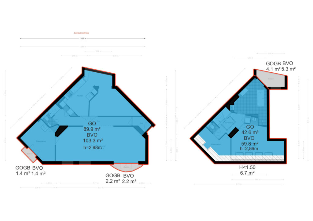 – Hoekappartement verdeeld over de twee bovenste verdiepingen, de derde én vierde verdieping;