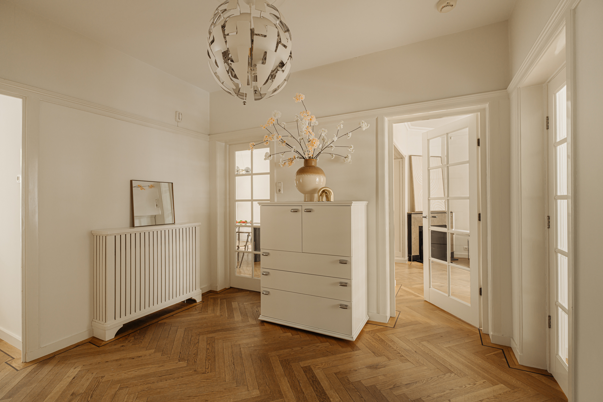 Through the private entrance you enter the property. Spacious hall with wardrobe, separate toilet and practical laundry room.