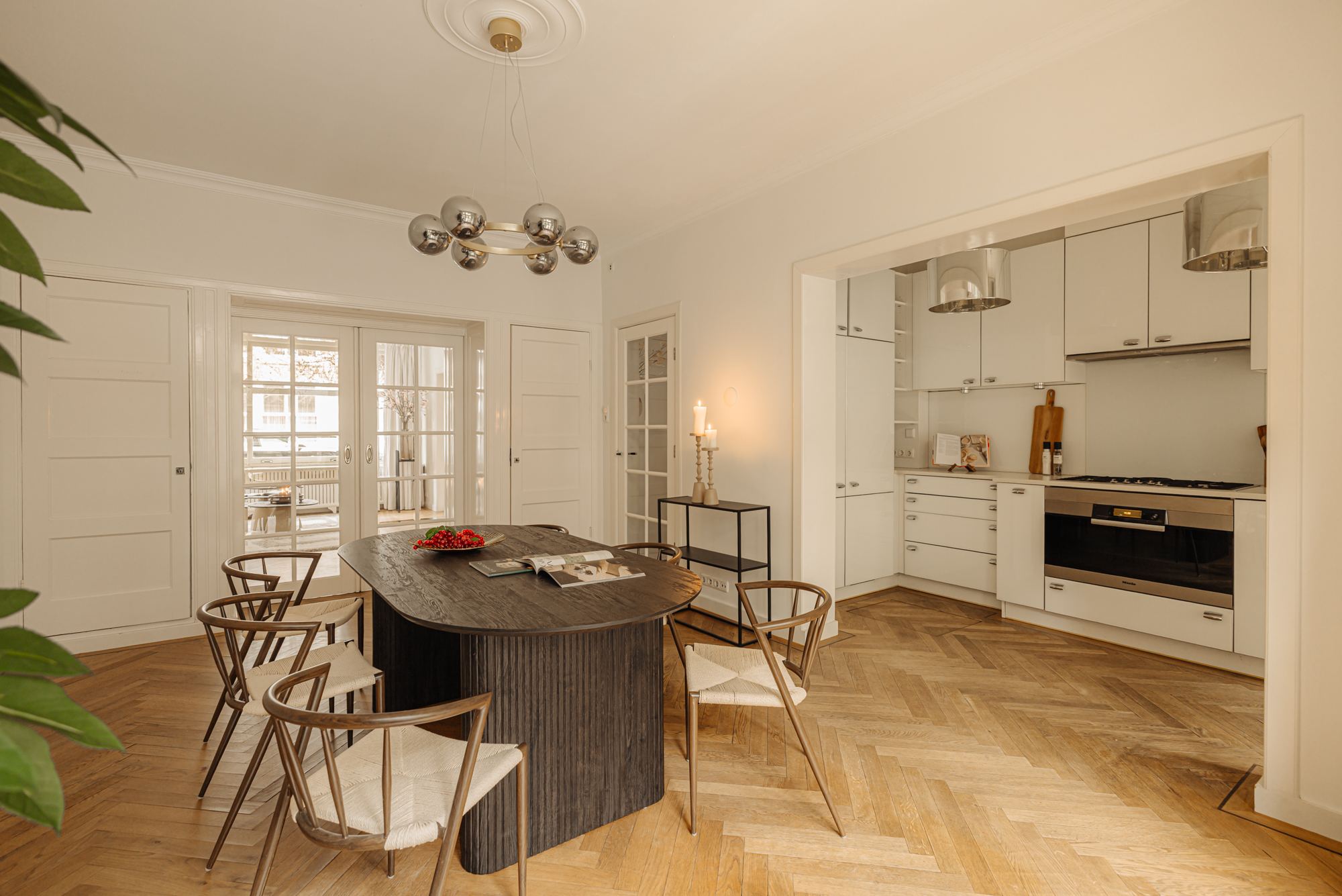 The kitchen is equipped with high-quality built-in appliances, including a Miele 5-burner gas hob, Miele dishwasher, Quooker and a Liebherr fridge/freezer combination with ice maker. Thanks to the open layout, this is an ideal space for both daily use and extensive dining.