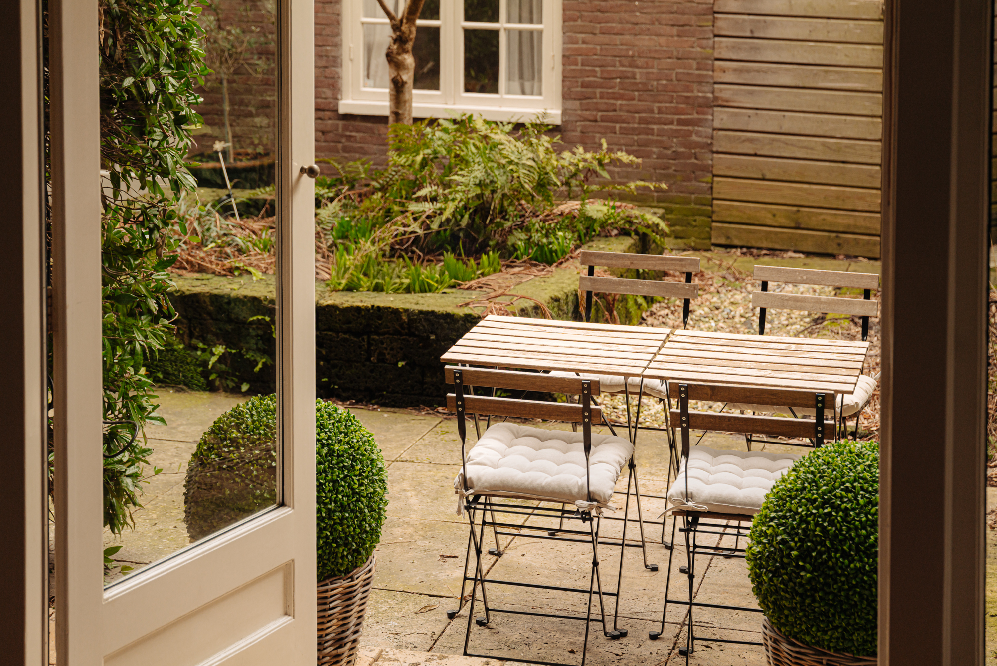 De onder architectuur ontworpen tuin is een ware oase, voorzien van een stijlvolle waterpartij en volop privacy. Achterin de tuin bevindt zich het luxe tuinhuis, ingericht als volwaardig gastenverblijf met eigen slaapkamer, douche en toilet; perfect voor logees, au-pair of werk aan huis.