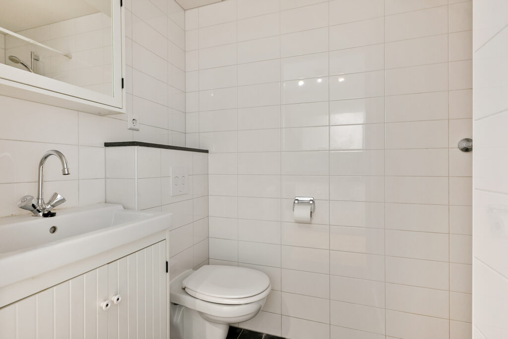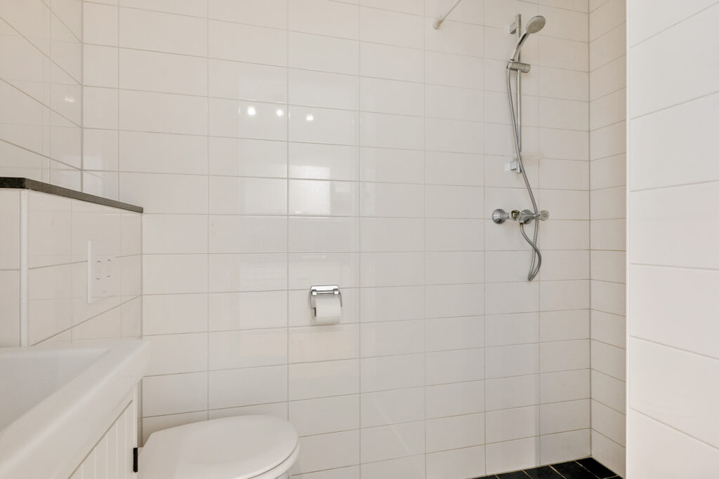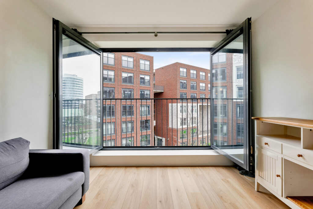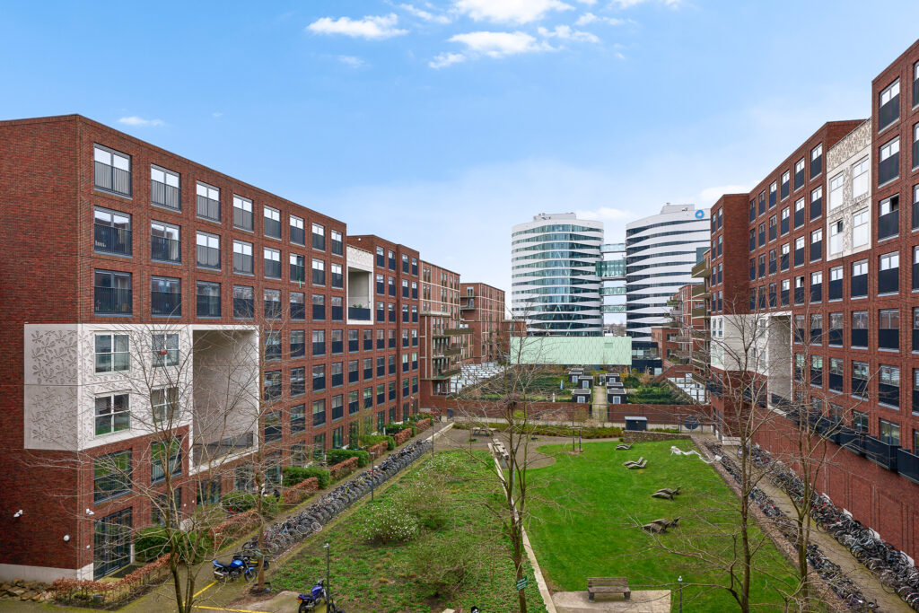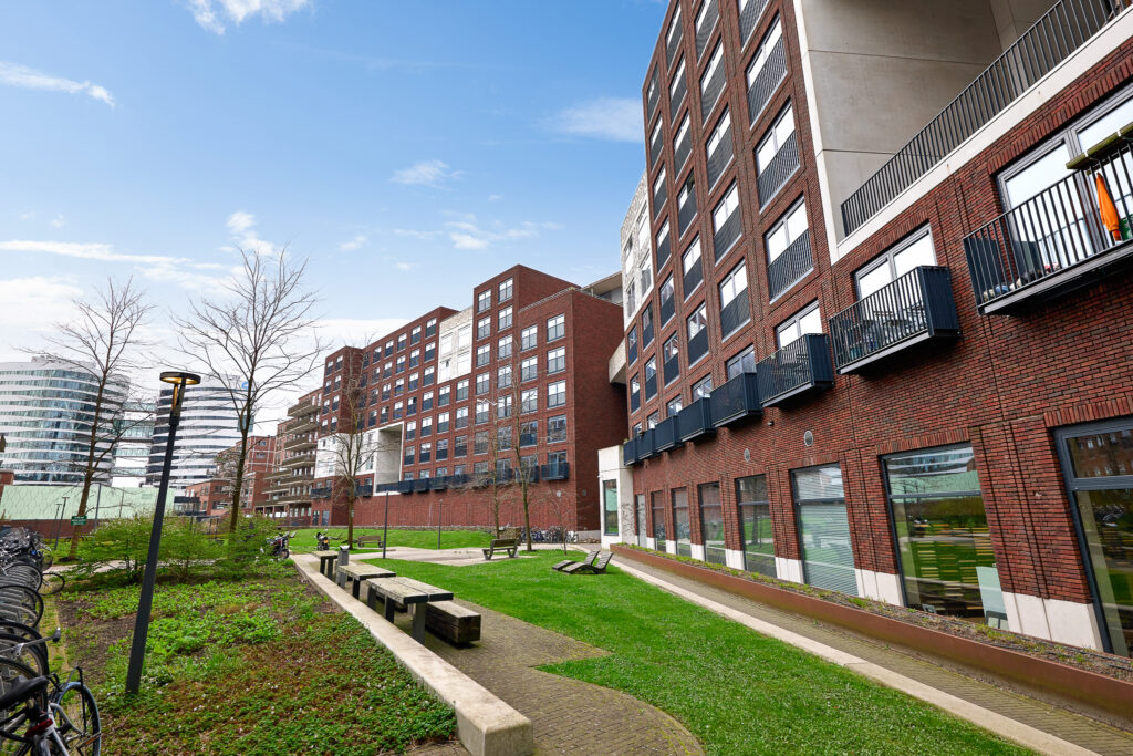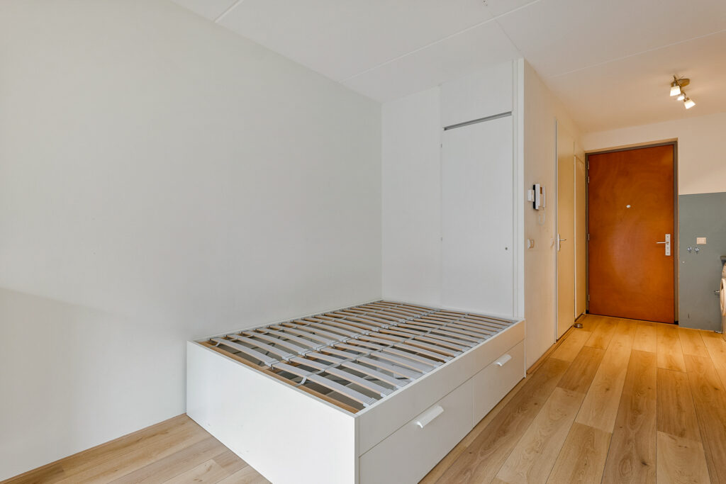 Wat direct opvalt, is de grote raampartij met vrij uitzicht op de groene binnentuin. Dit is ook een Franse balkon, je kunt beide ramen heerlijk wijd open zetten. De kamer biedt genoeg ruimte voor een tweepersoons bed, kledingkast en een leuke zit/eethoek. De complete badkamer is voorzien van inloopdouche, toilet en wastafelmeubel. De twee ingebouwde kasten kunnen eventueel benut worden als extra bergruimte. Het gehele appartement is voorzien van vloerverwarming.